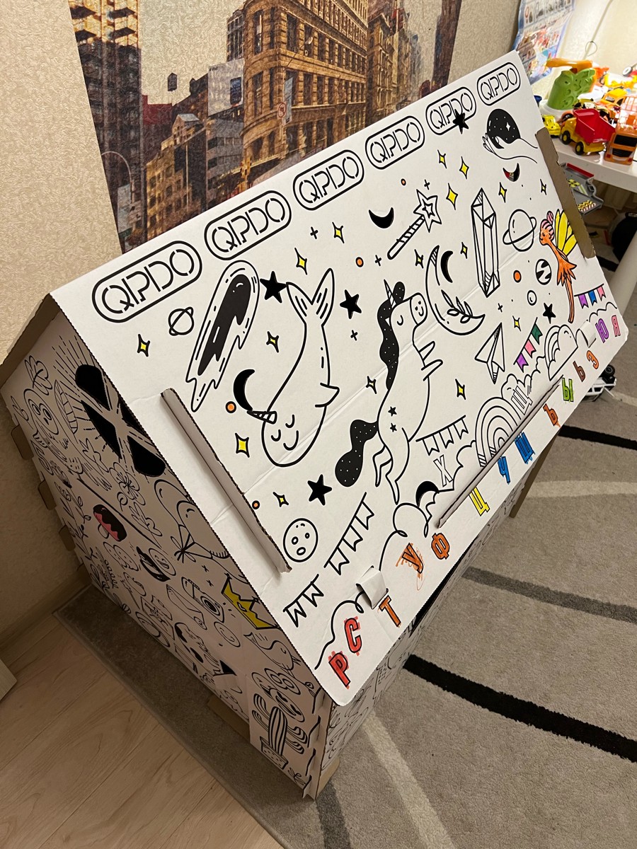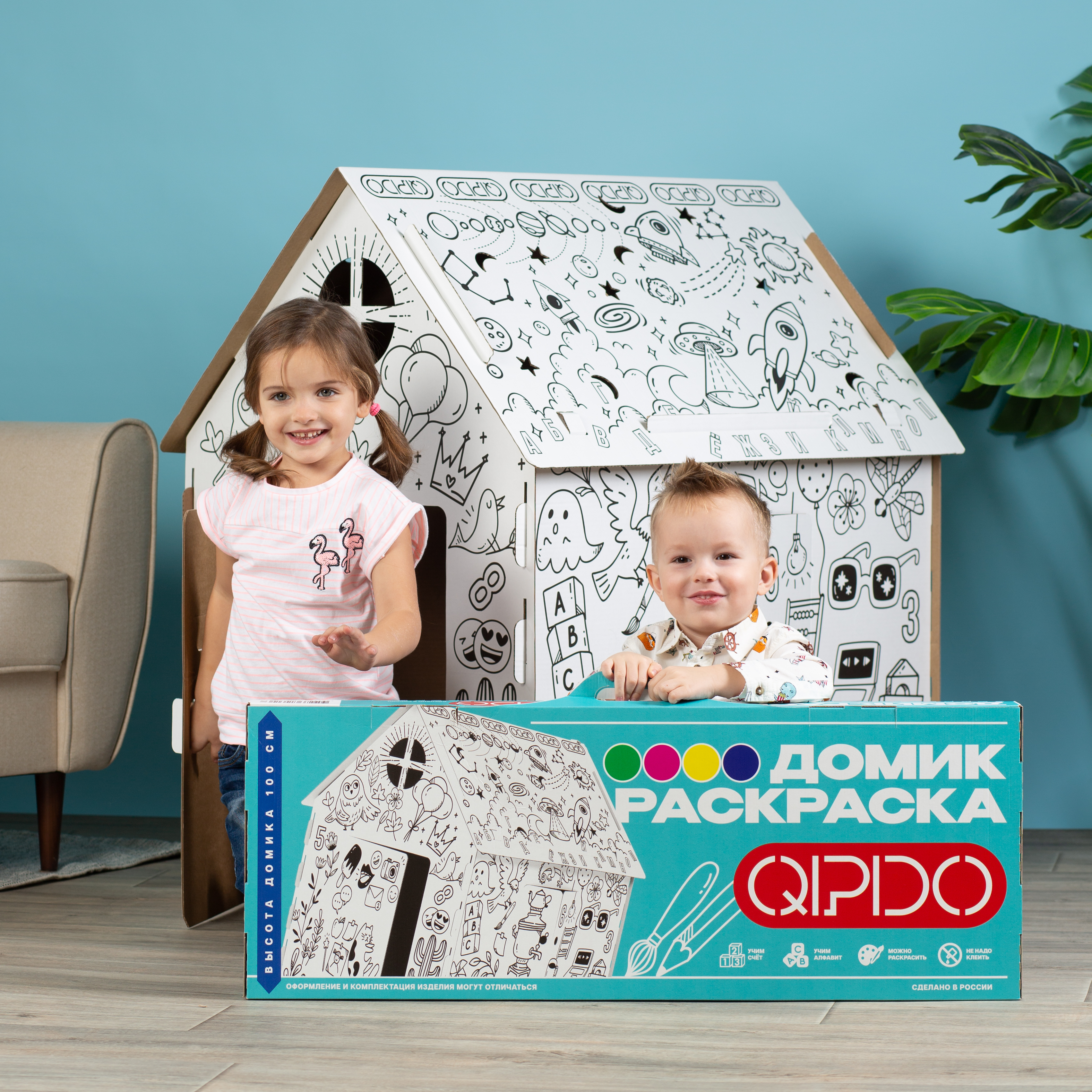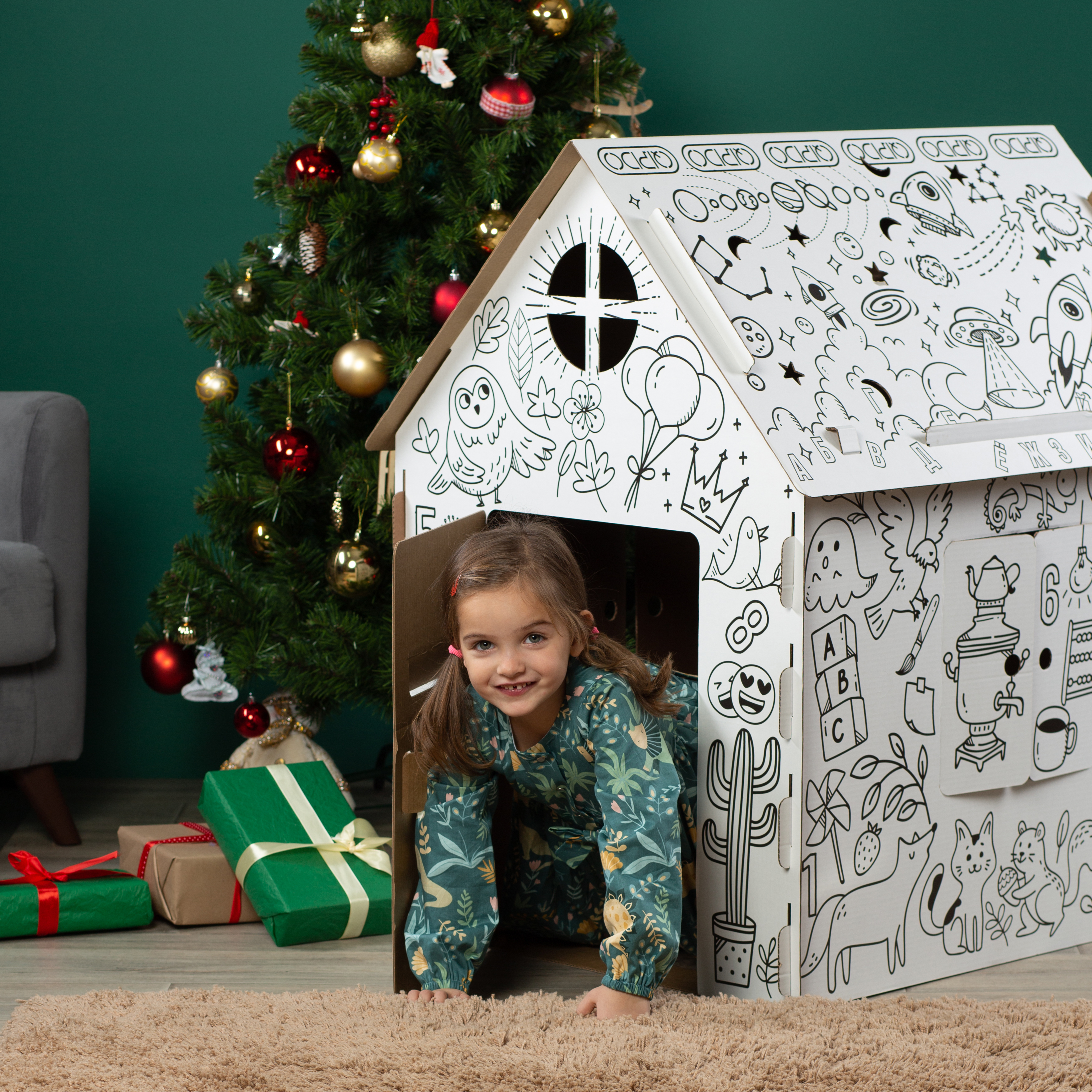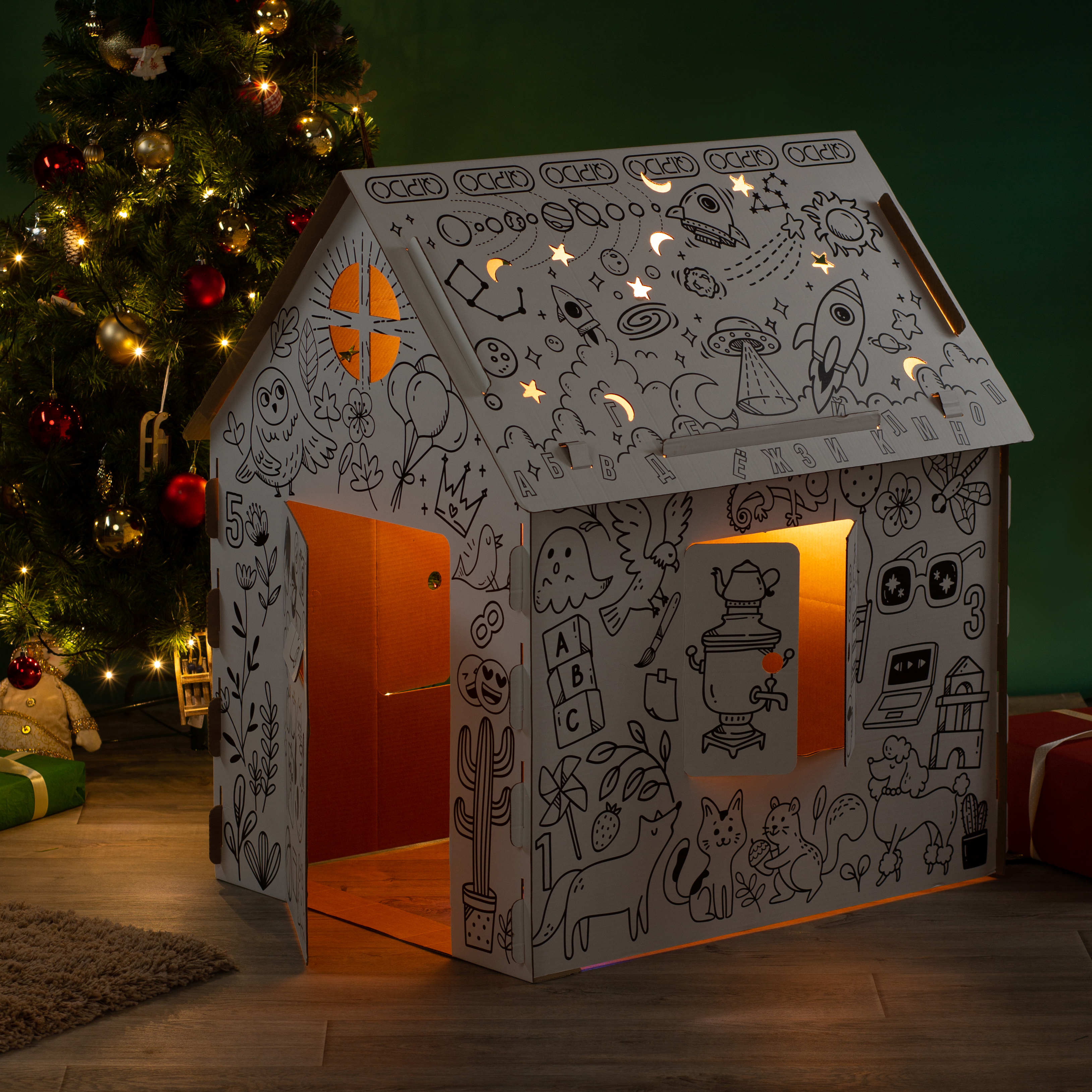 Развивающий домик - раскраска "QPDO", картонный домик , игровой, с алфавитом и цифрами, подарок на новый год