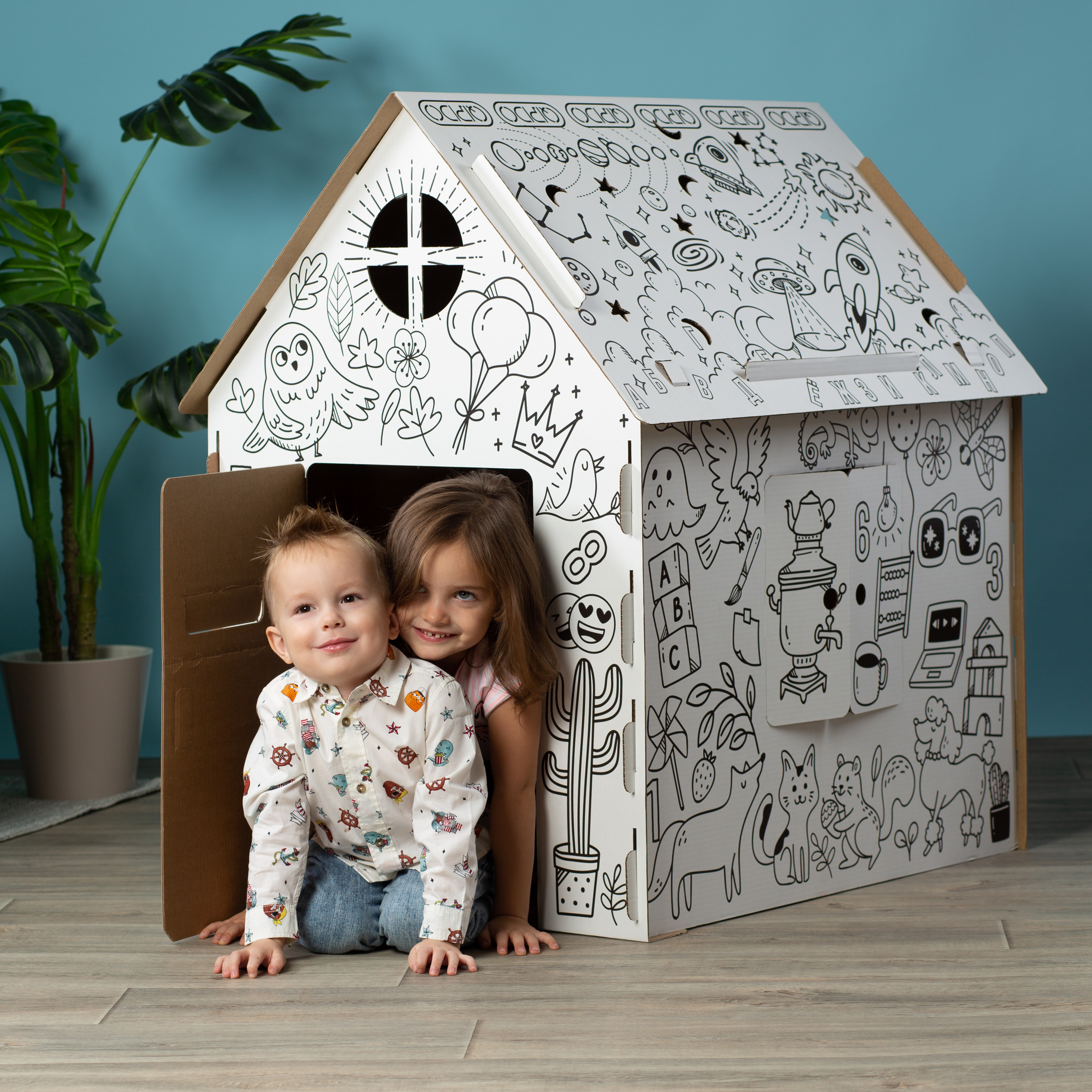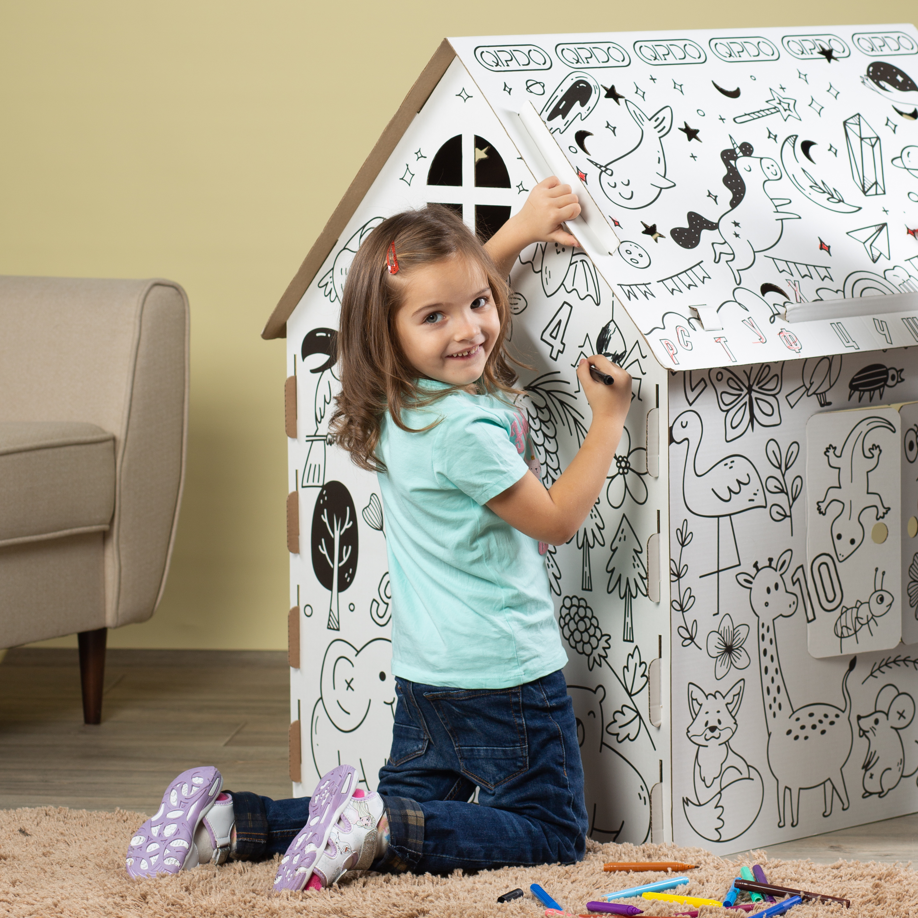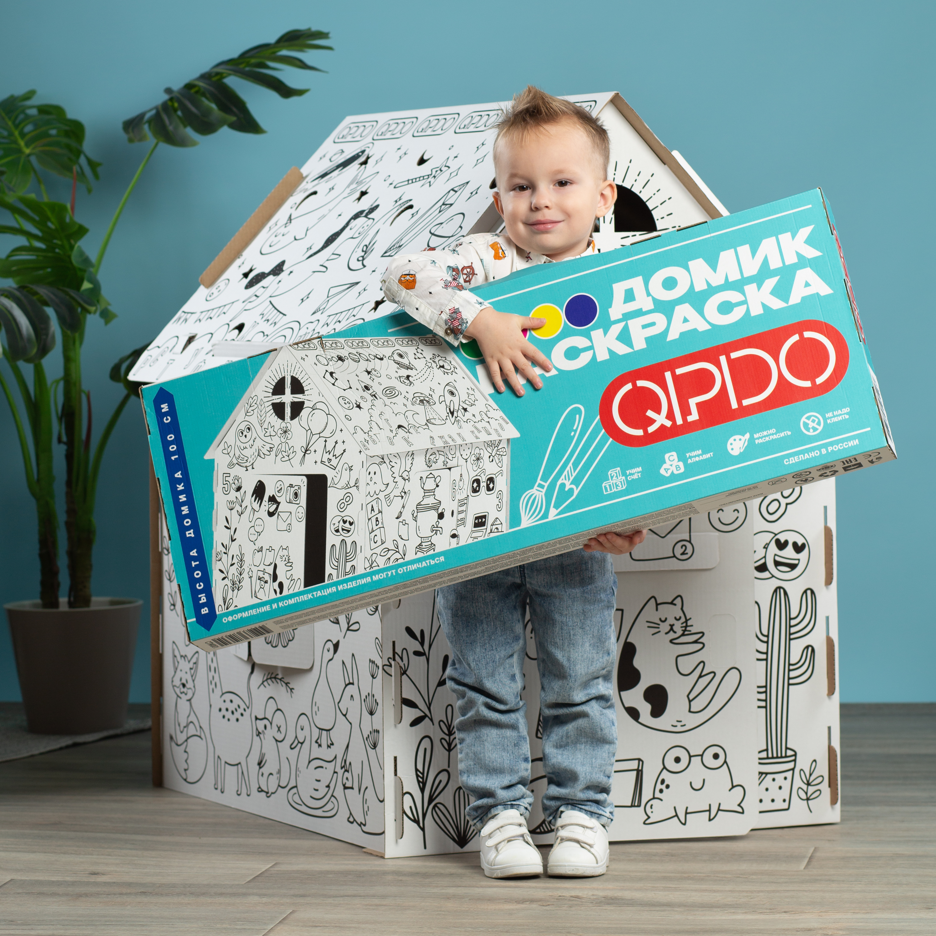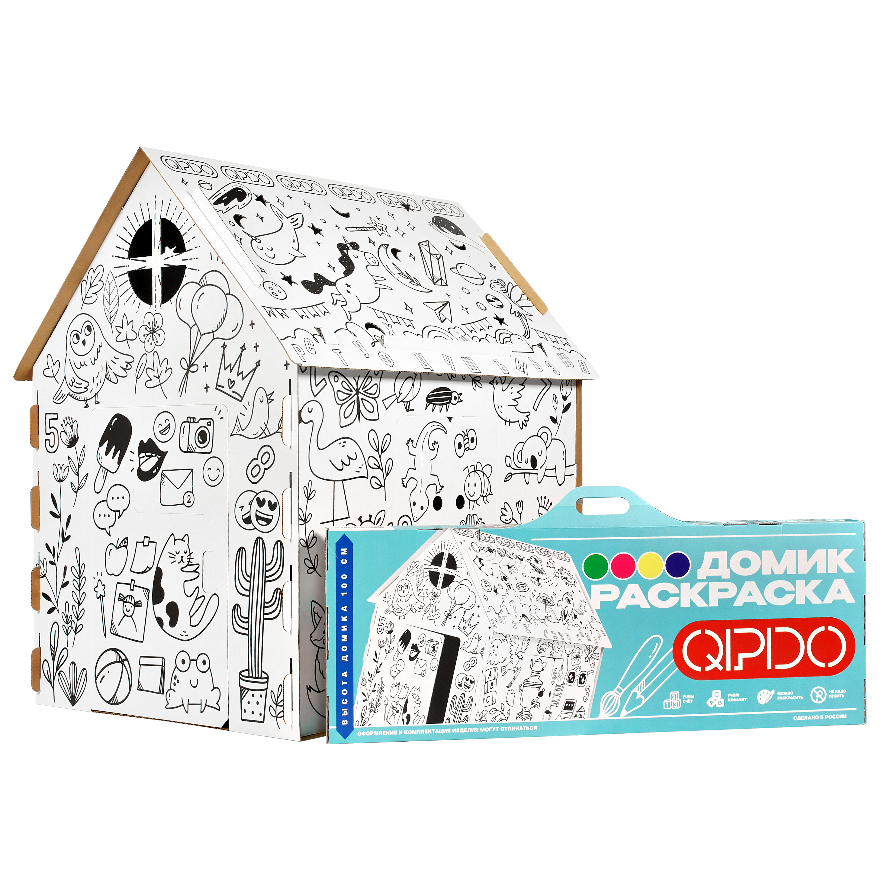 Развивающий домик - раскраска "QPDO", картонный домик , игровой, с алфавитом и цифрами, подарок на новый год