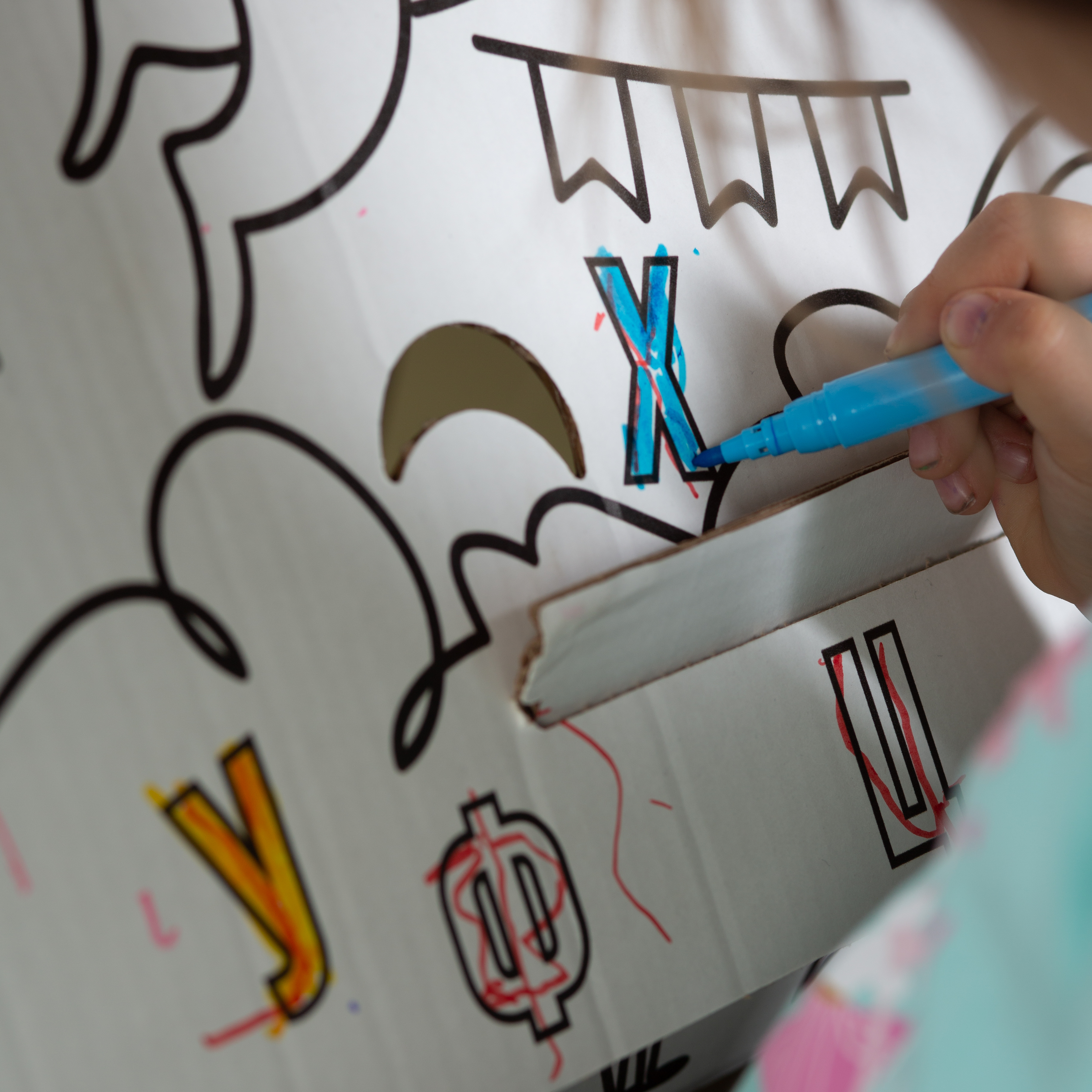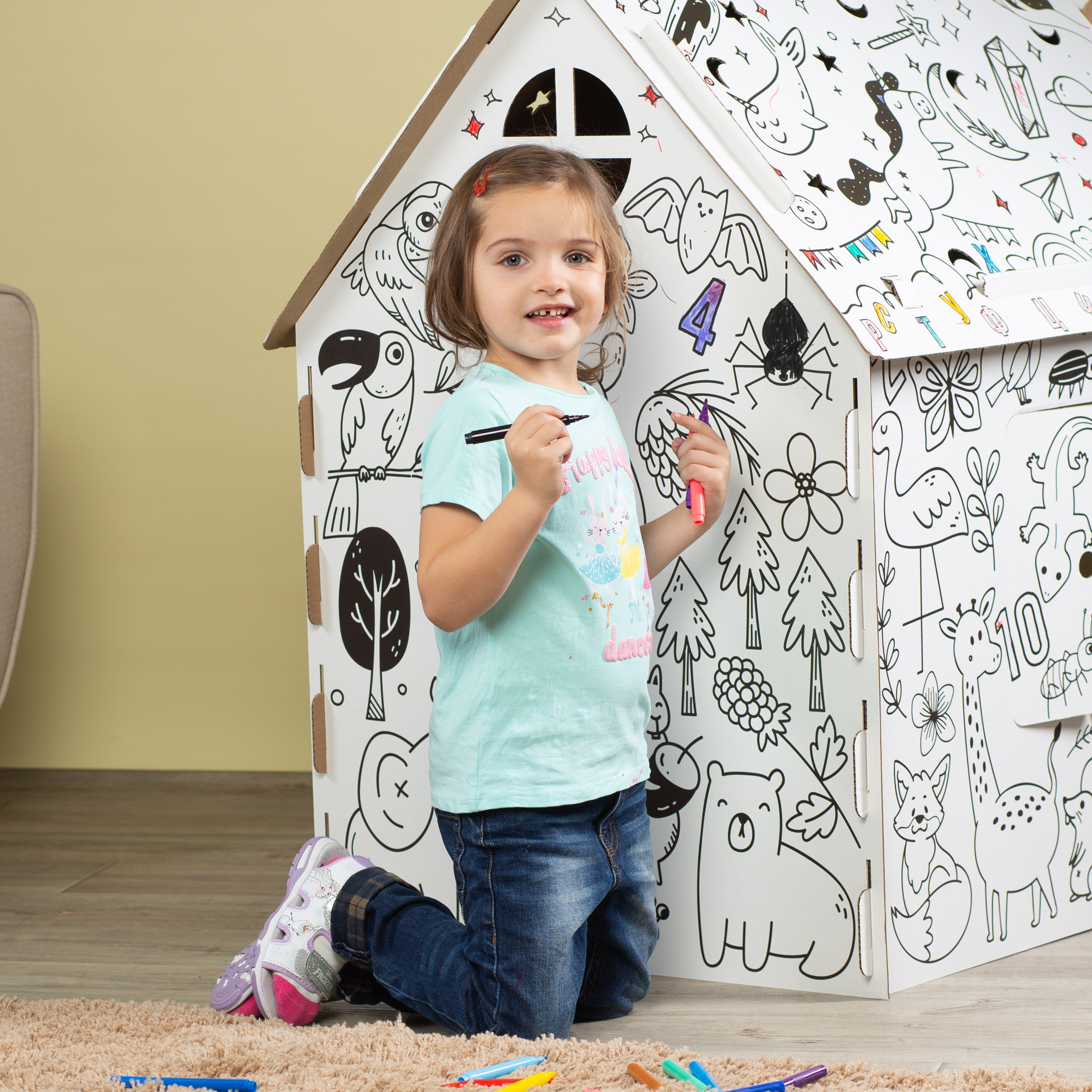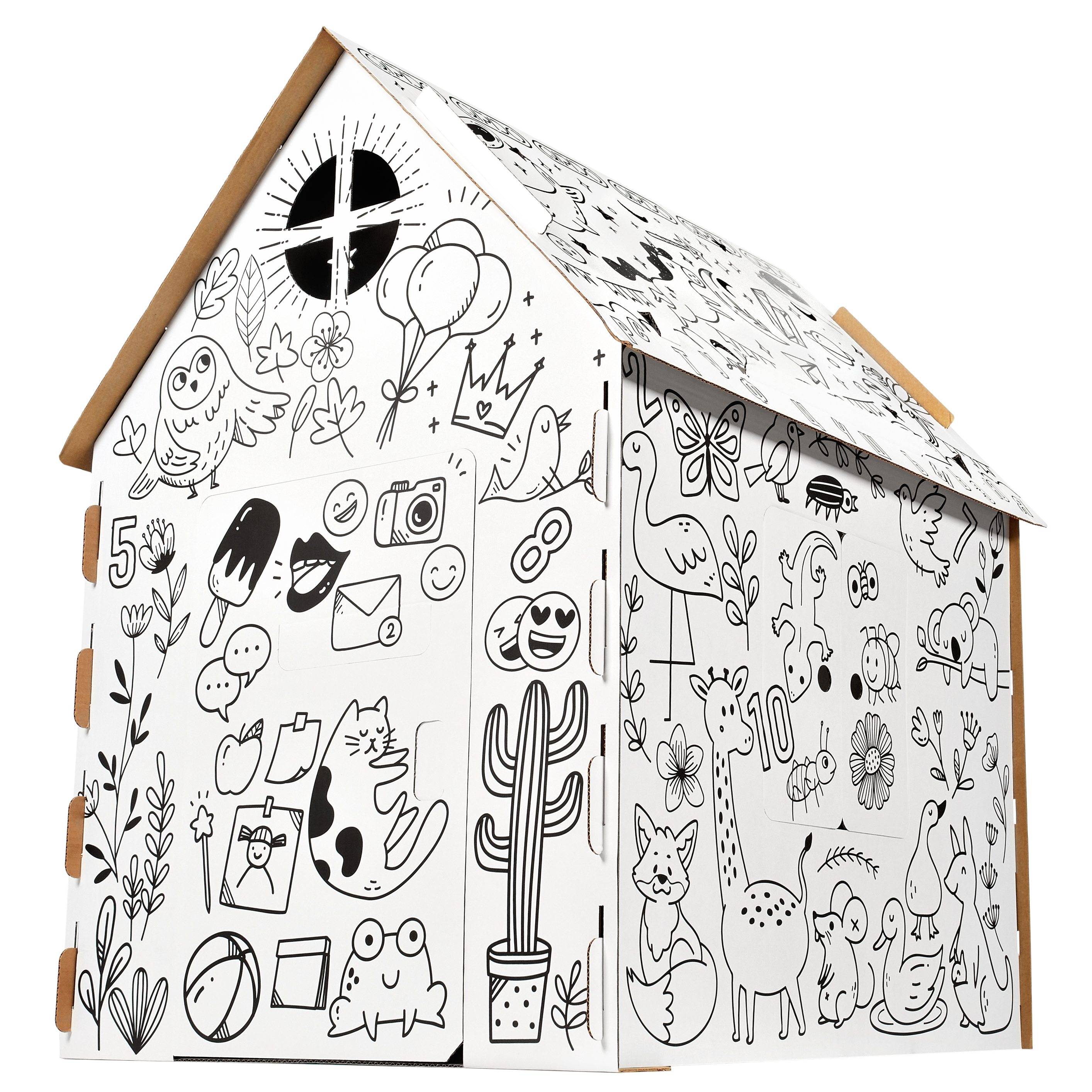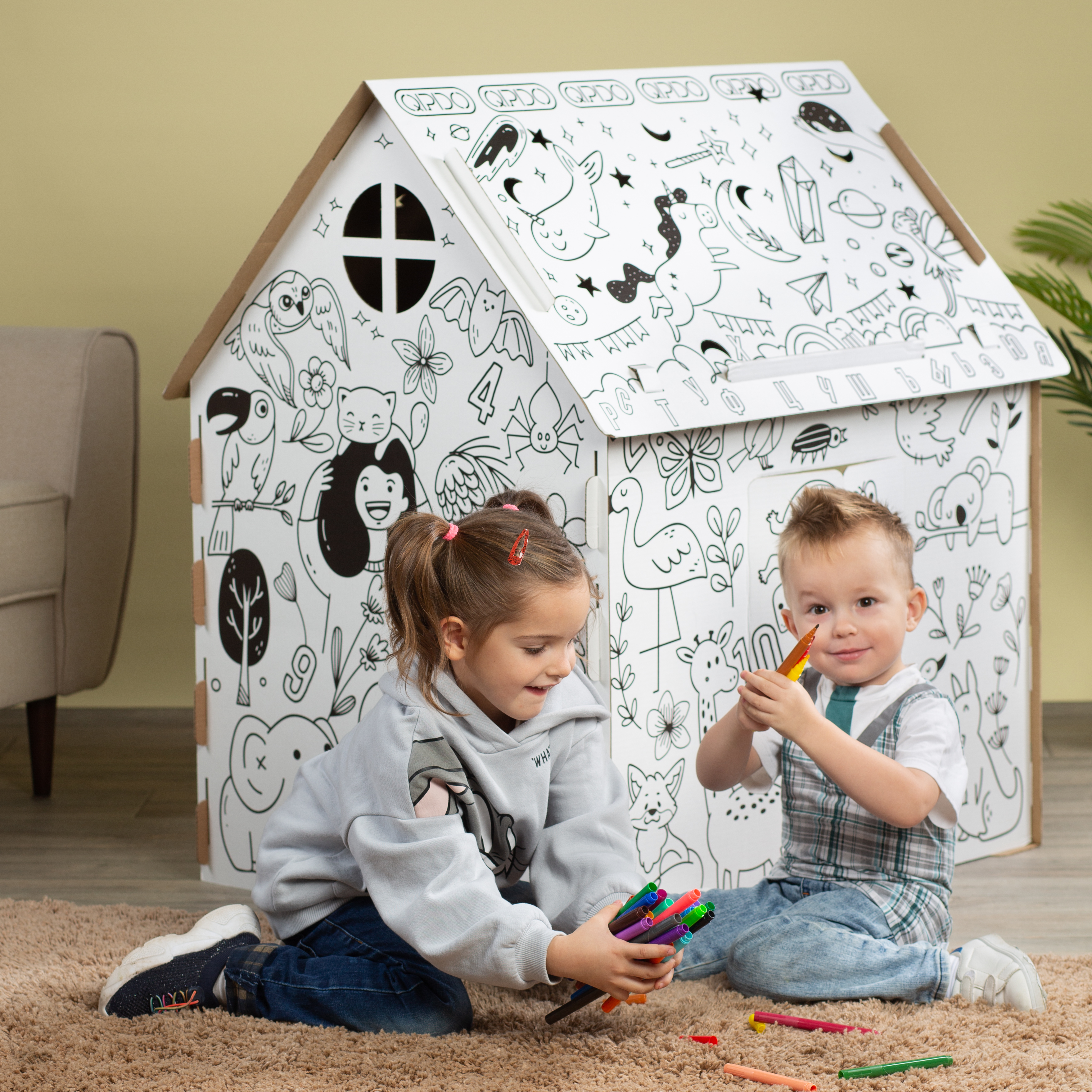 Развивающий домик - раскраска "QPDO", картонный домик , игровой, с алфавитом и цифрами, подарок на новый год