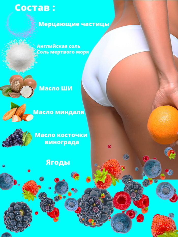 Антицеллюлитный Скраб для тела с блестками мерцающий/ ягодный скраб