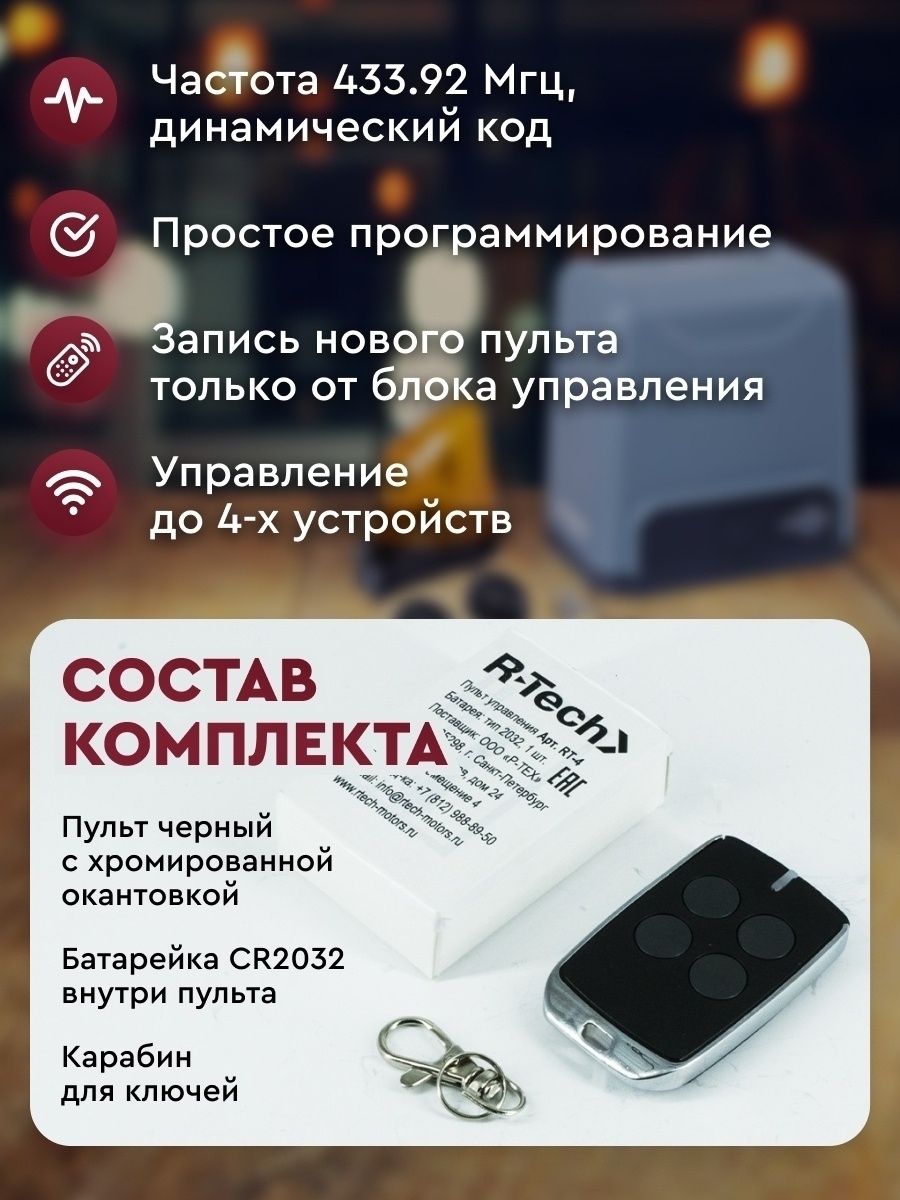 Пульт-брелок для автоматических ворот R-Tech RT-4, 433Мгц