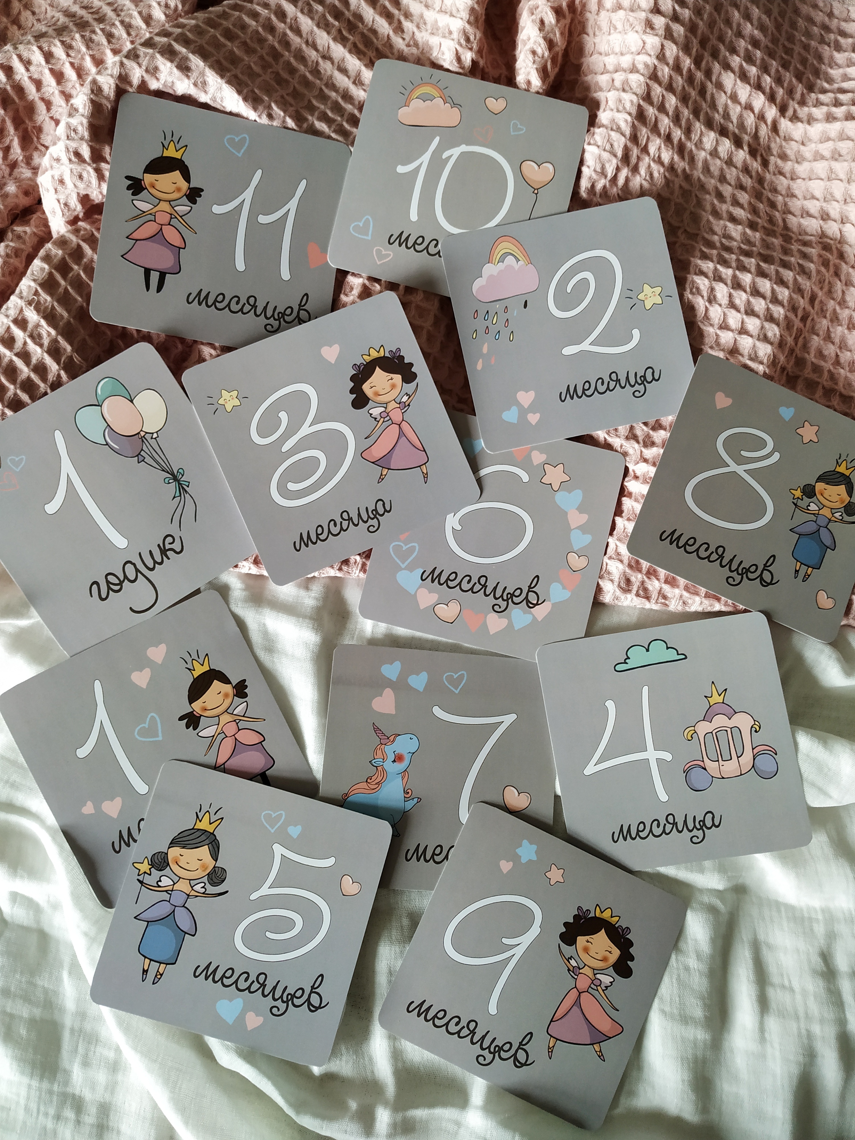 Карточки для фотосесий "Принцесса", набор карточек с месяцами и фразами