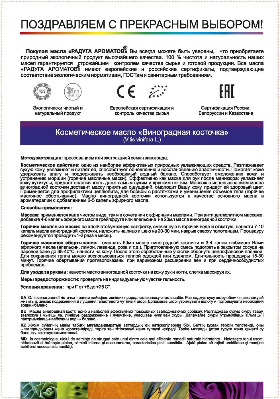 Радуга ароматов "Виноградная косточка" масло косметическое, 25 мл