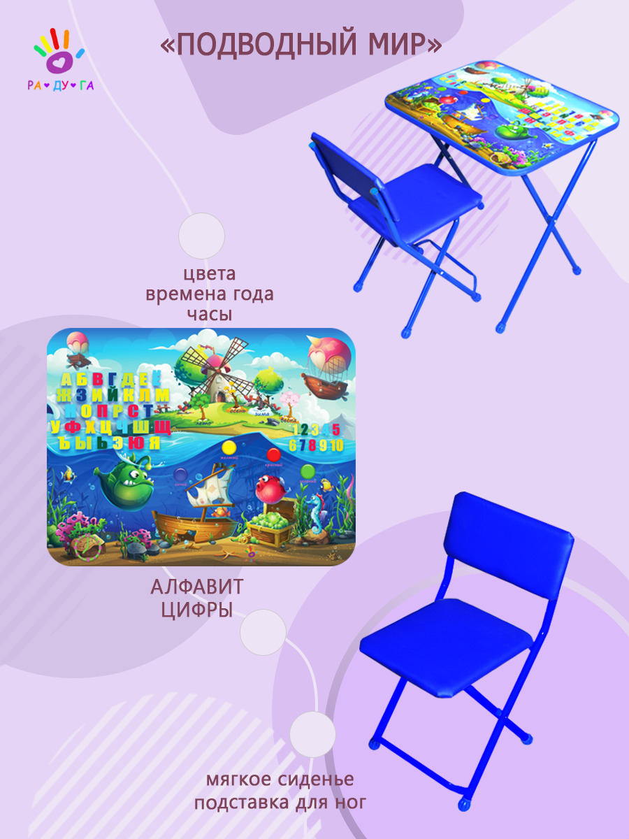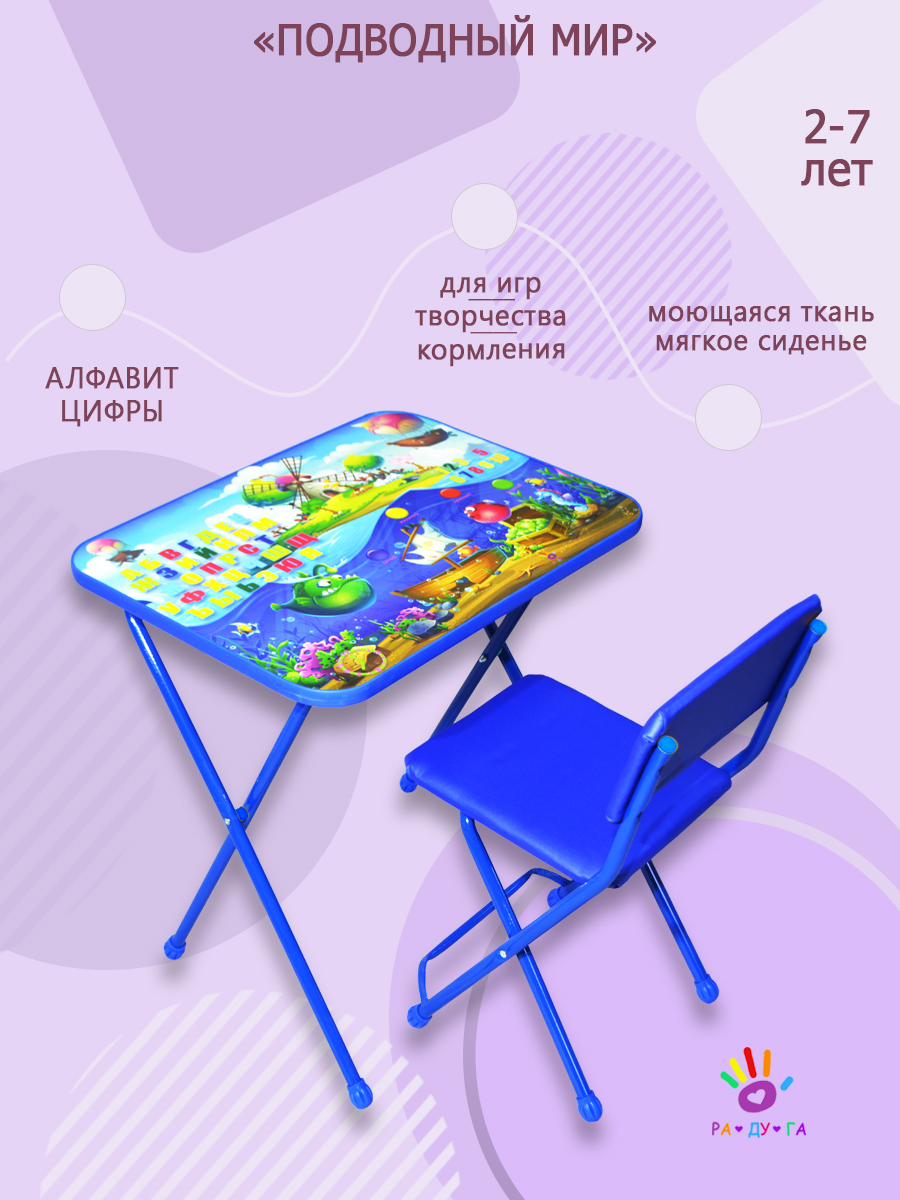 Комплект детской складной мебели Радуга "Подводный мир" каркас синий