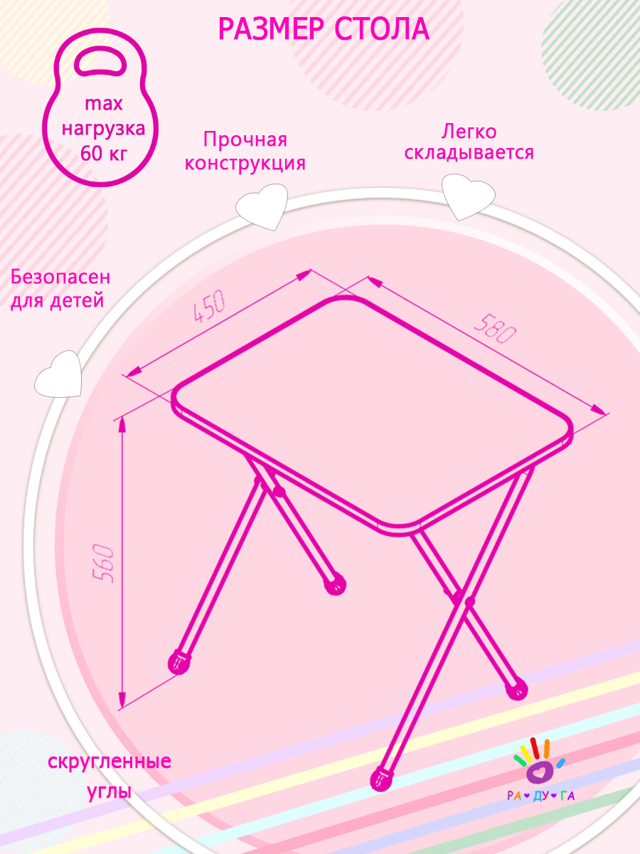 комплект детской, складной мебели "Радуга" принцессы НСС-Р1. каркас розовый