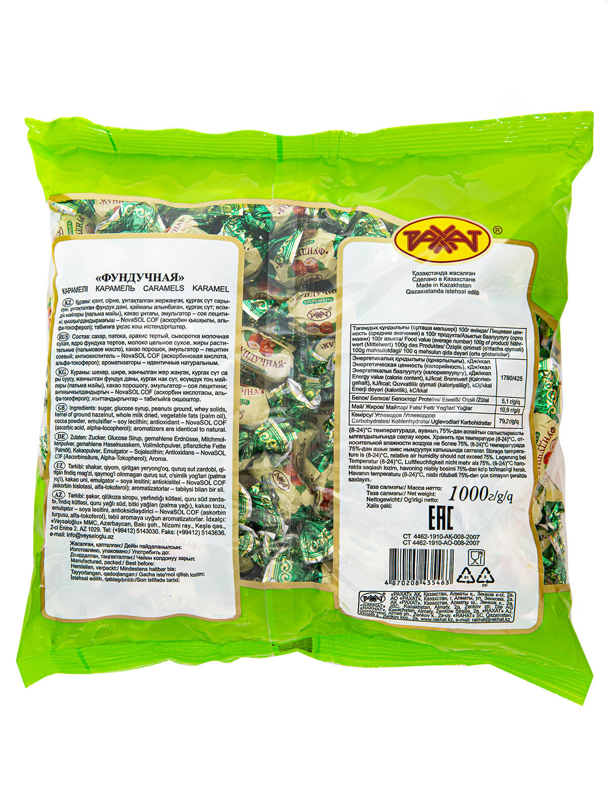 Карамель РАХАТ "ФУНДУЧНАЯ" с пралиновой начинкой с добавлением ореха фундука и какао порошка, 1 кг