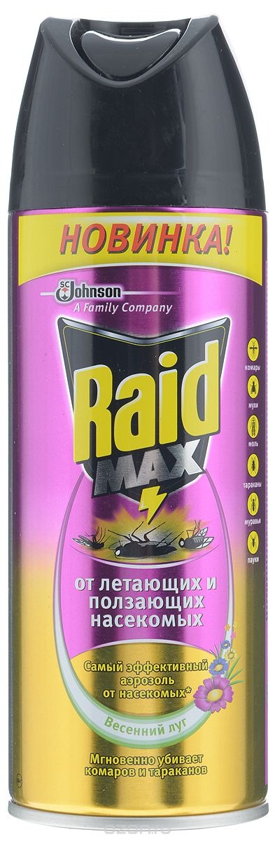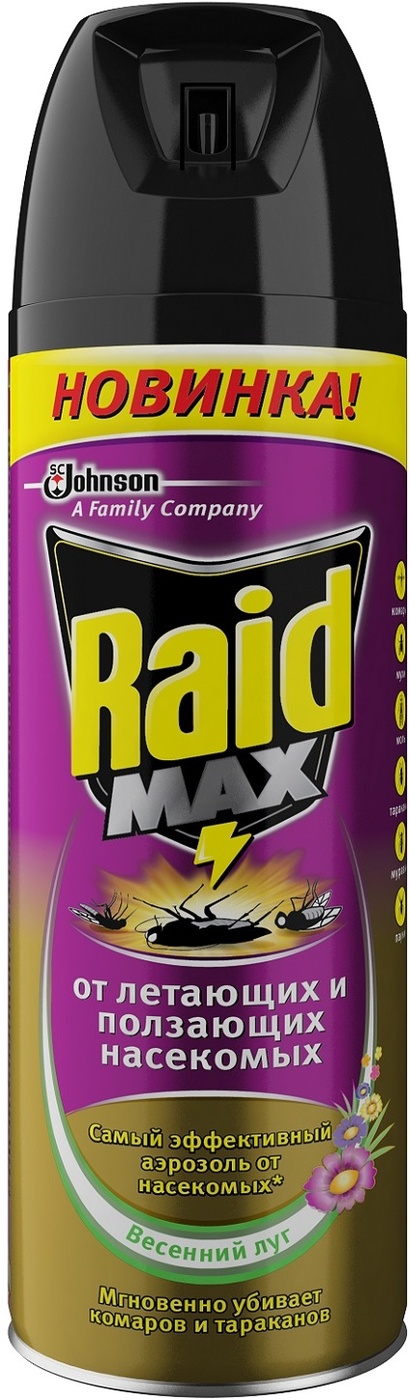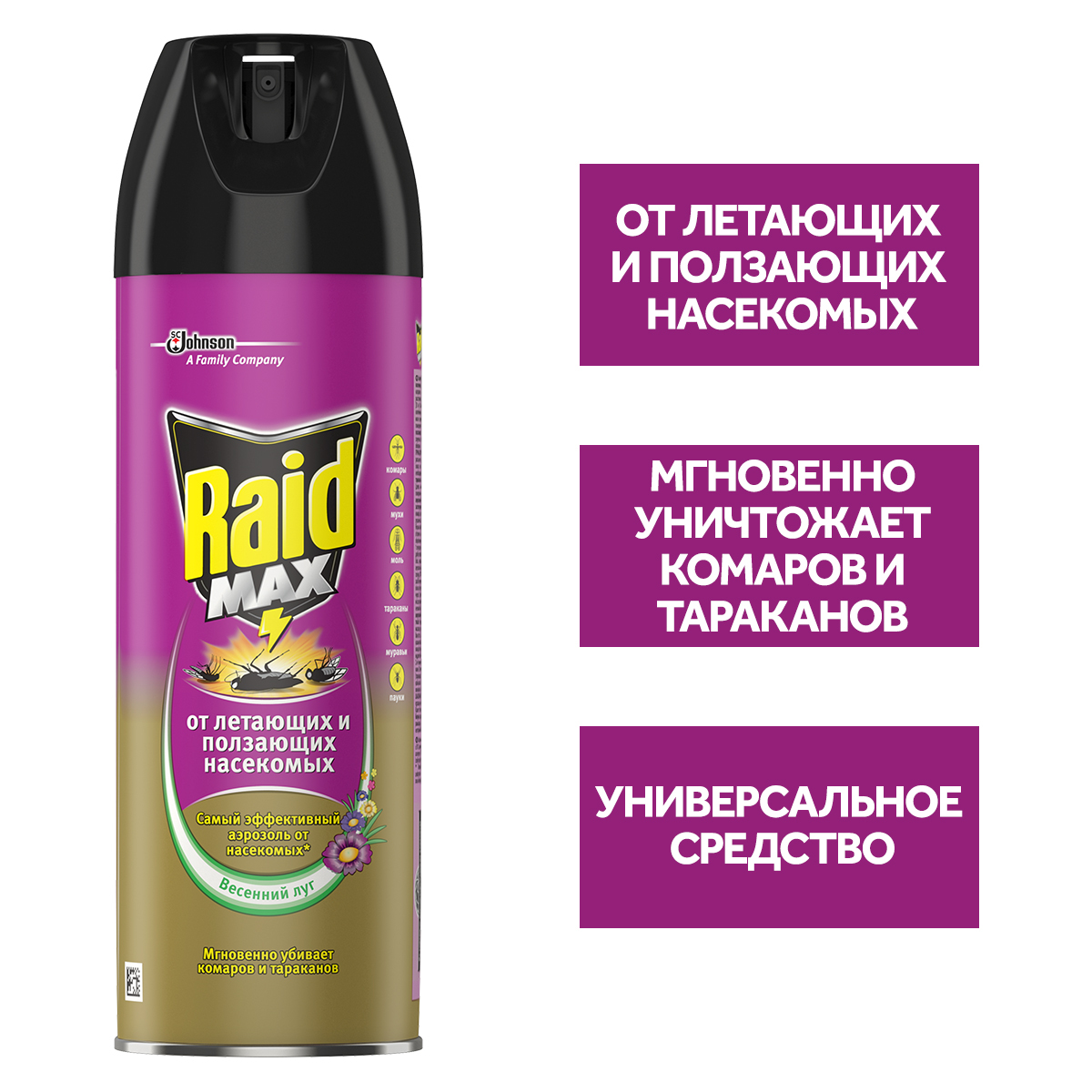 Аэрозоль от летающих и ползающих насекомых Raid "Max", весенний луг, 300 мл