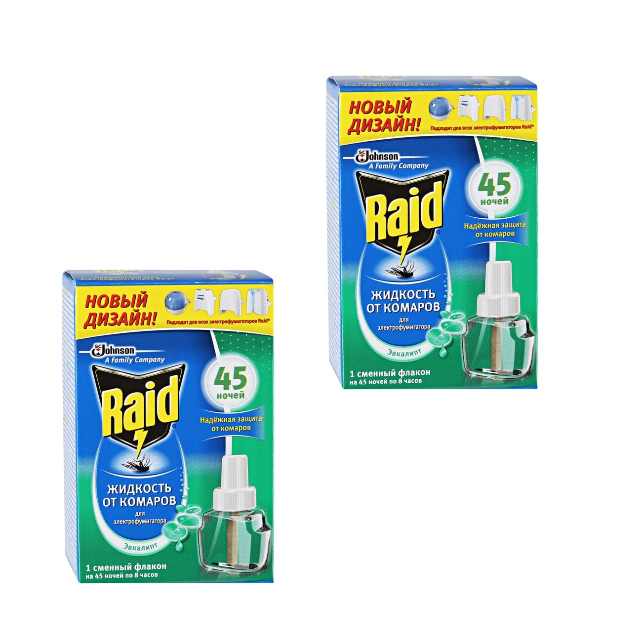 Raid Жидкость для фумигатора "Эвкалипт", на 45 ночей, 2 шт.