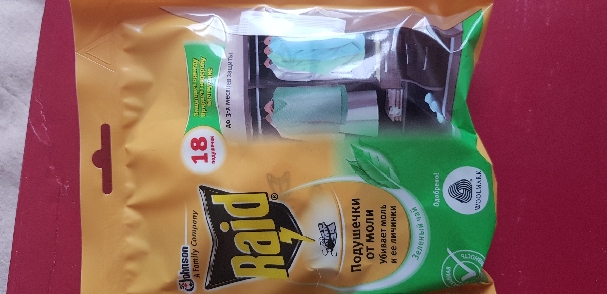 Подушечка от моли "Raid", зеленый чай, 18 шт