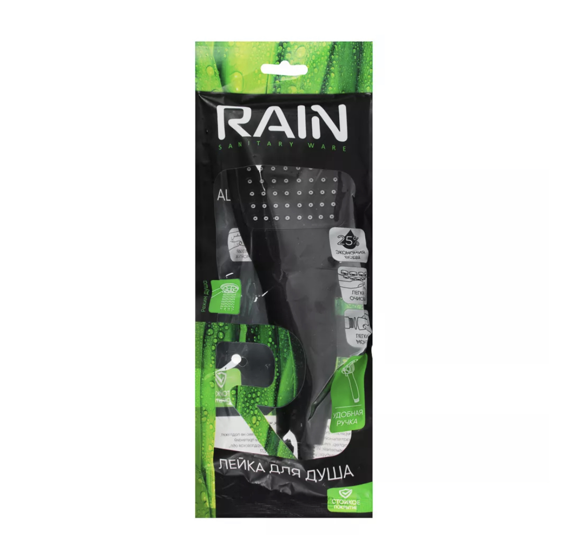 Лейка для душа, 1 режим, черная RAIN 582-050