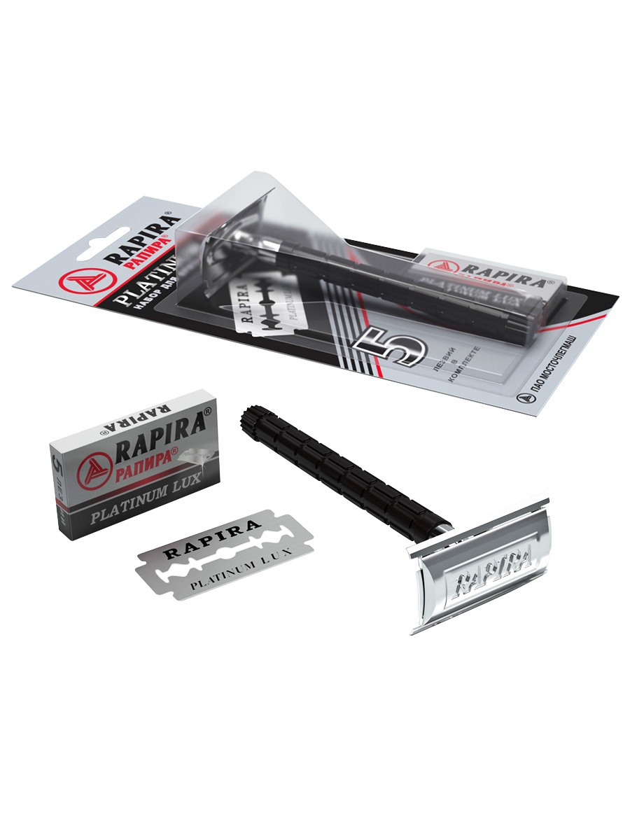 Бритва Т-образная Rapira Platinum Lux, с набором лезвий, Рапира