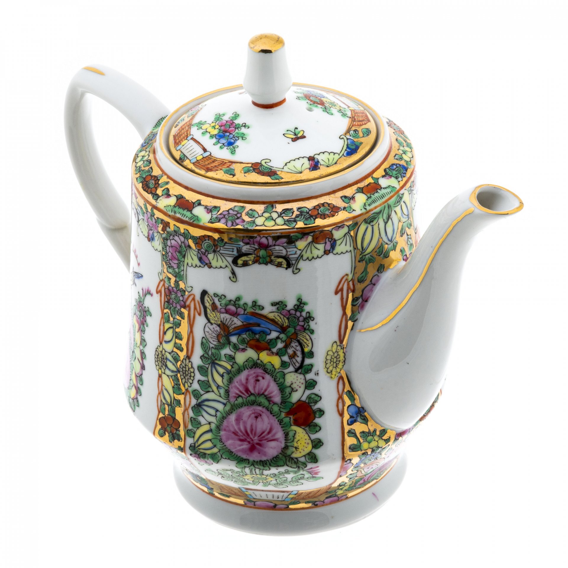 Сервиз чайный с цветочным декором на три персоны, фарфор, роспись, золочение, Китай, 1980-1990 гг.