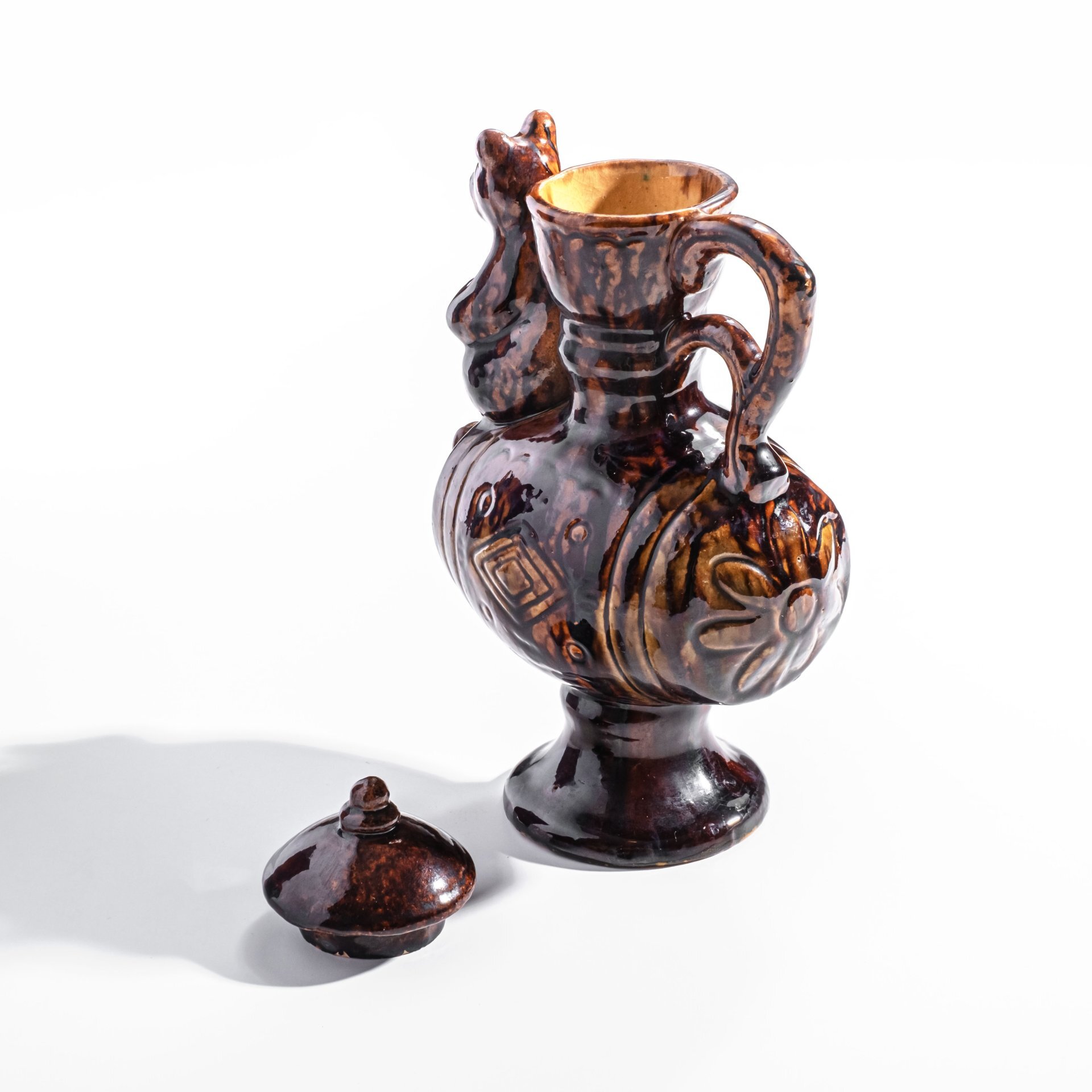 Кувшин декоративный "Медведь на бочке", обливная керамика, глазурь, СССР, 1980-1990 гг.