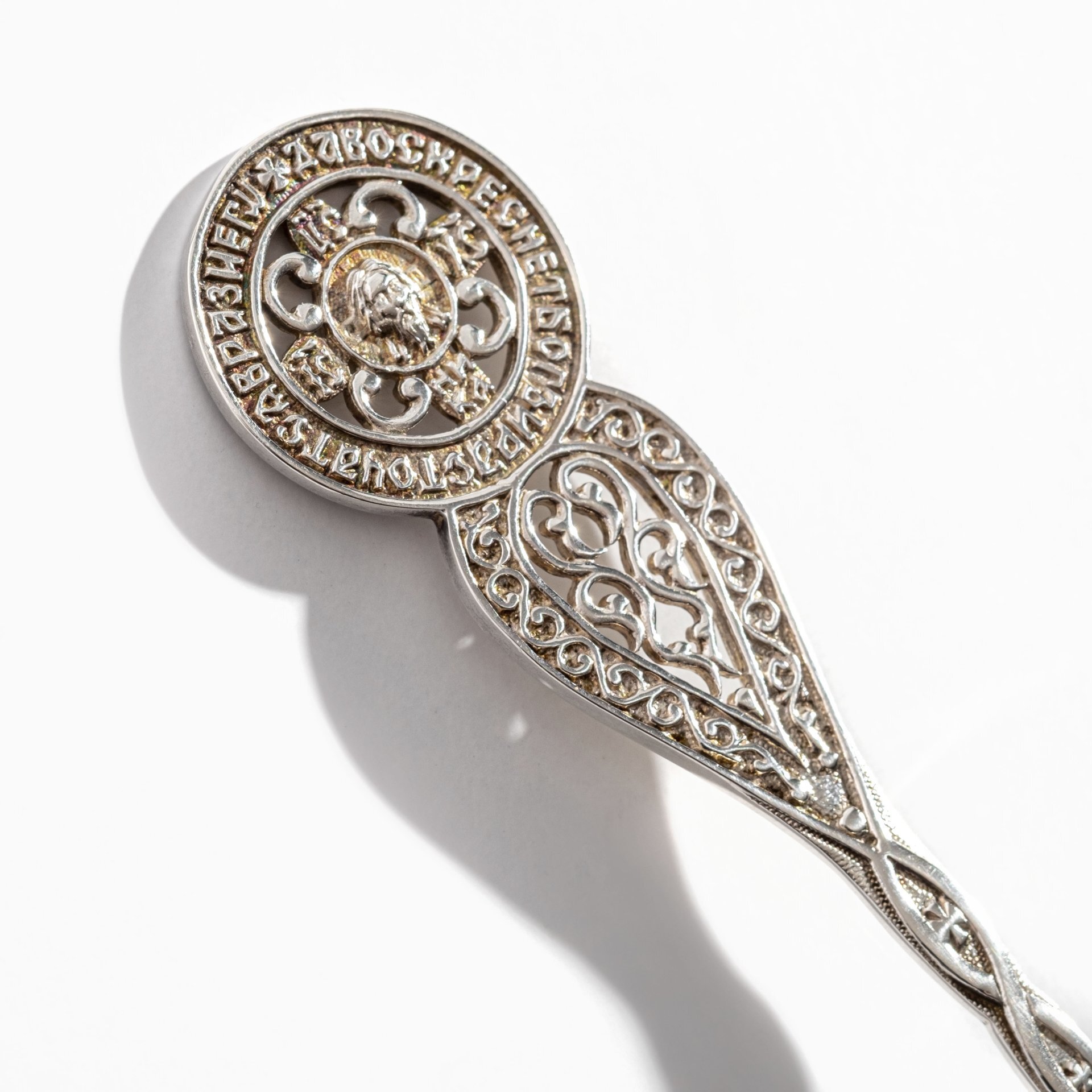 Ложка сувенирная с ажурной рукоятью "Да воскреснет Бог", серебро 925 пробы, Россия, 2013 г.