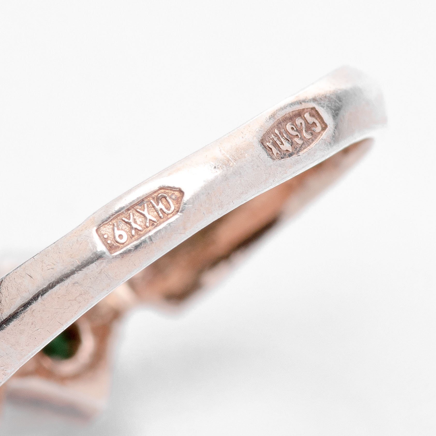 Кольцо со вставкой зелёного цвета, серебро 925 пр., Харьковская ювелирная фабрика, СССР, 1976 г.