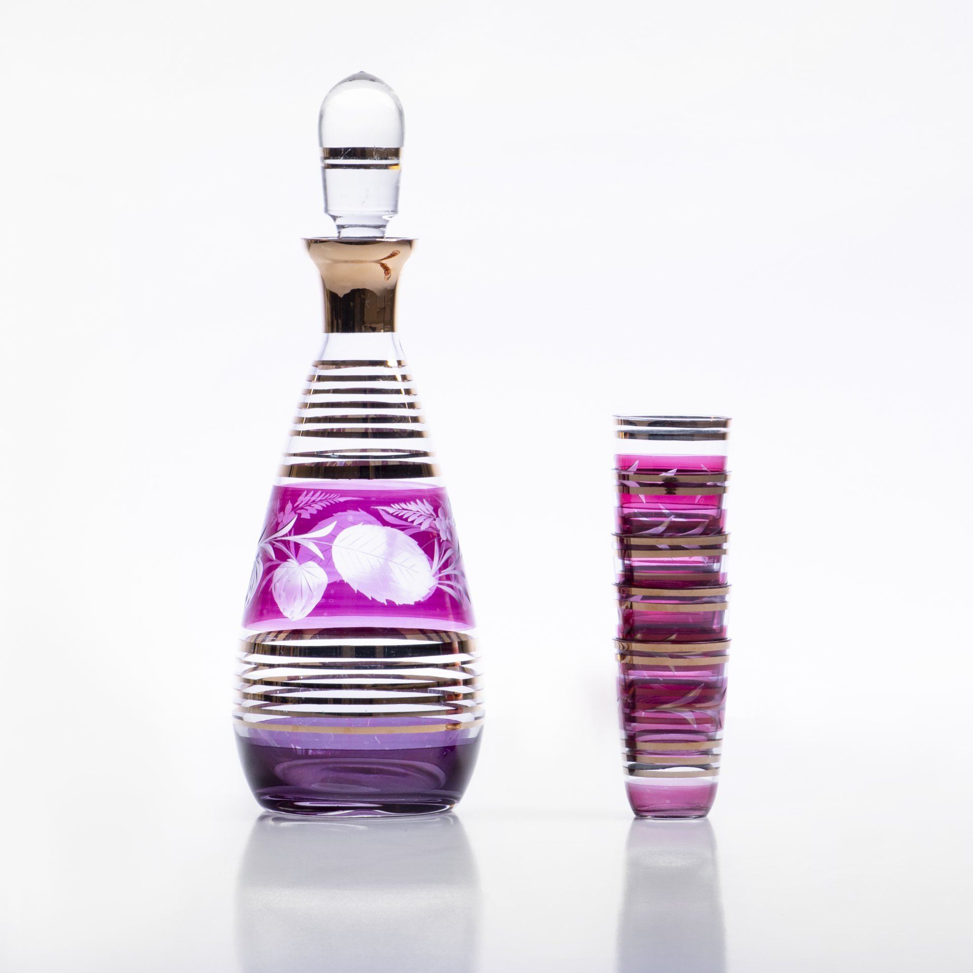 Набор из штофа и 5 стопок, двуцветное стекло, алмазная грань, золочение, Чехословакия, 1970-1990 гг.
