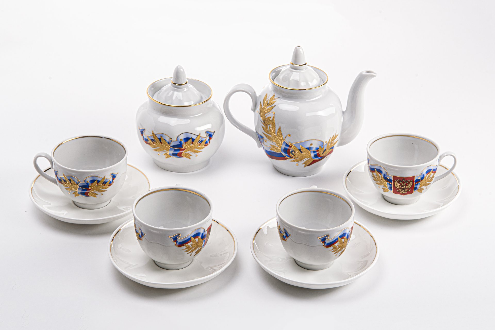 Набор из двух чайных пар "Голубые цветы", фарфор, деколь, Китай, 2000-2010 гг.