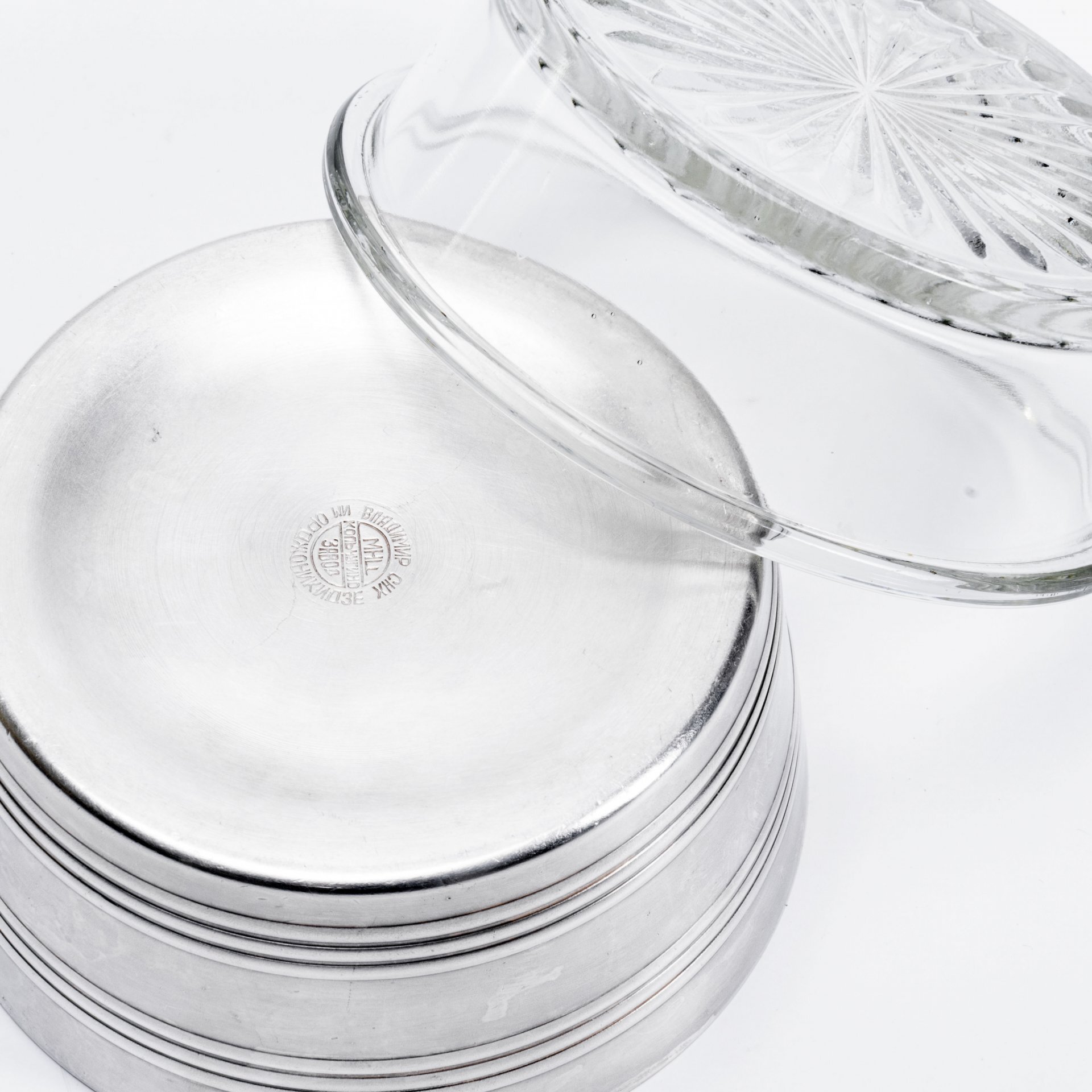 Икорница со стеклянной вставкой, мельхиор, Кольчугинский завод им. Орджоникидзе, СССР, 1950-1960 гг.