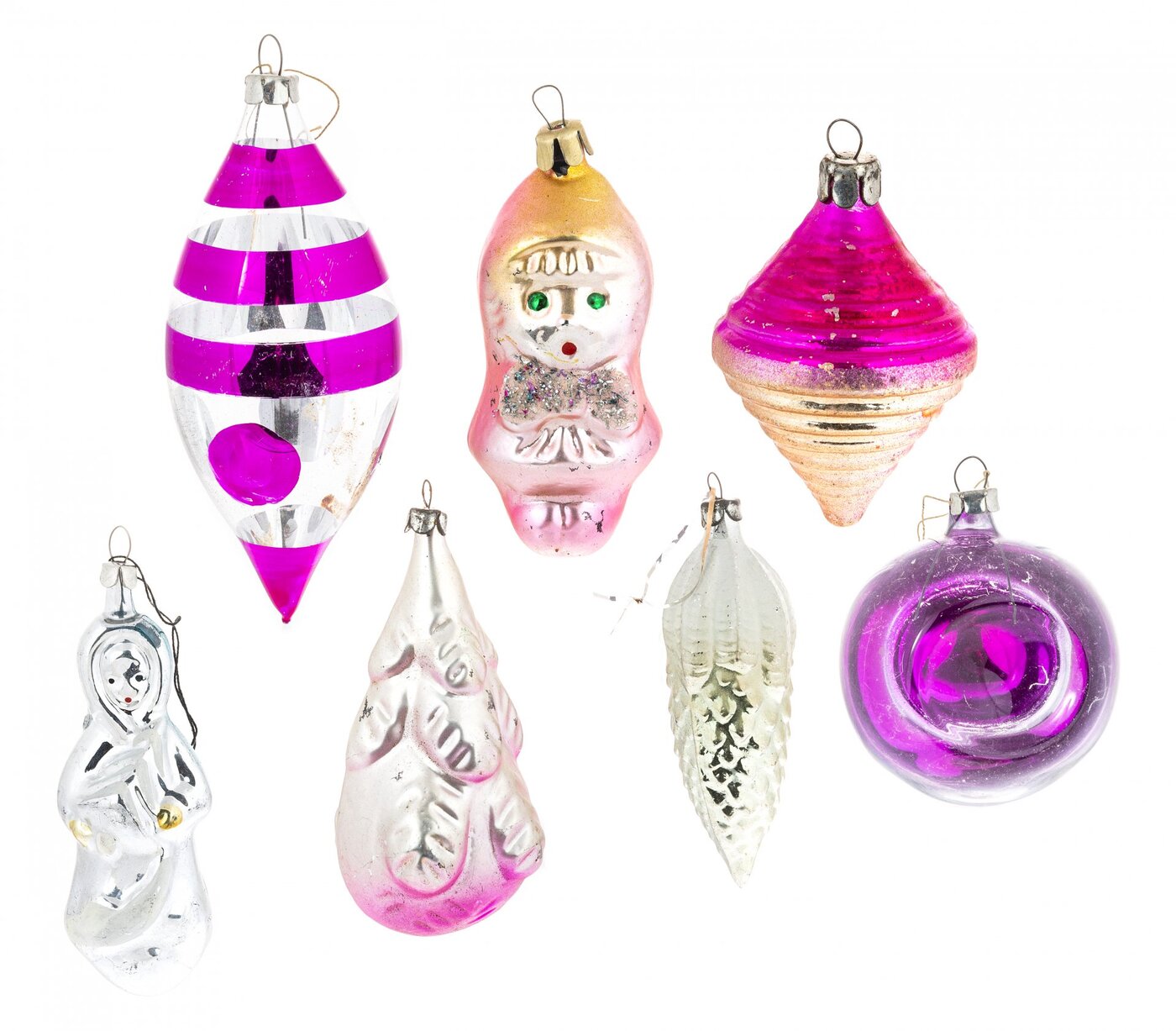 Набор из 7 елочных игрушек , стекло, СССР, 1950-1990 гг.