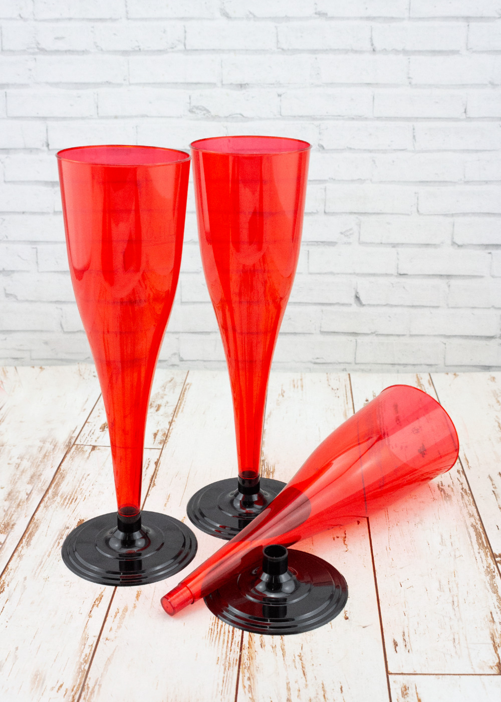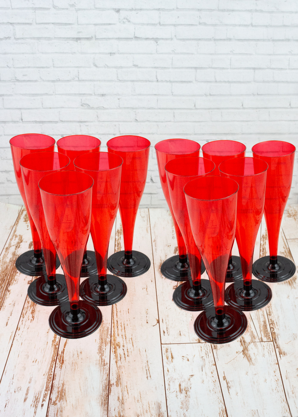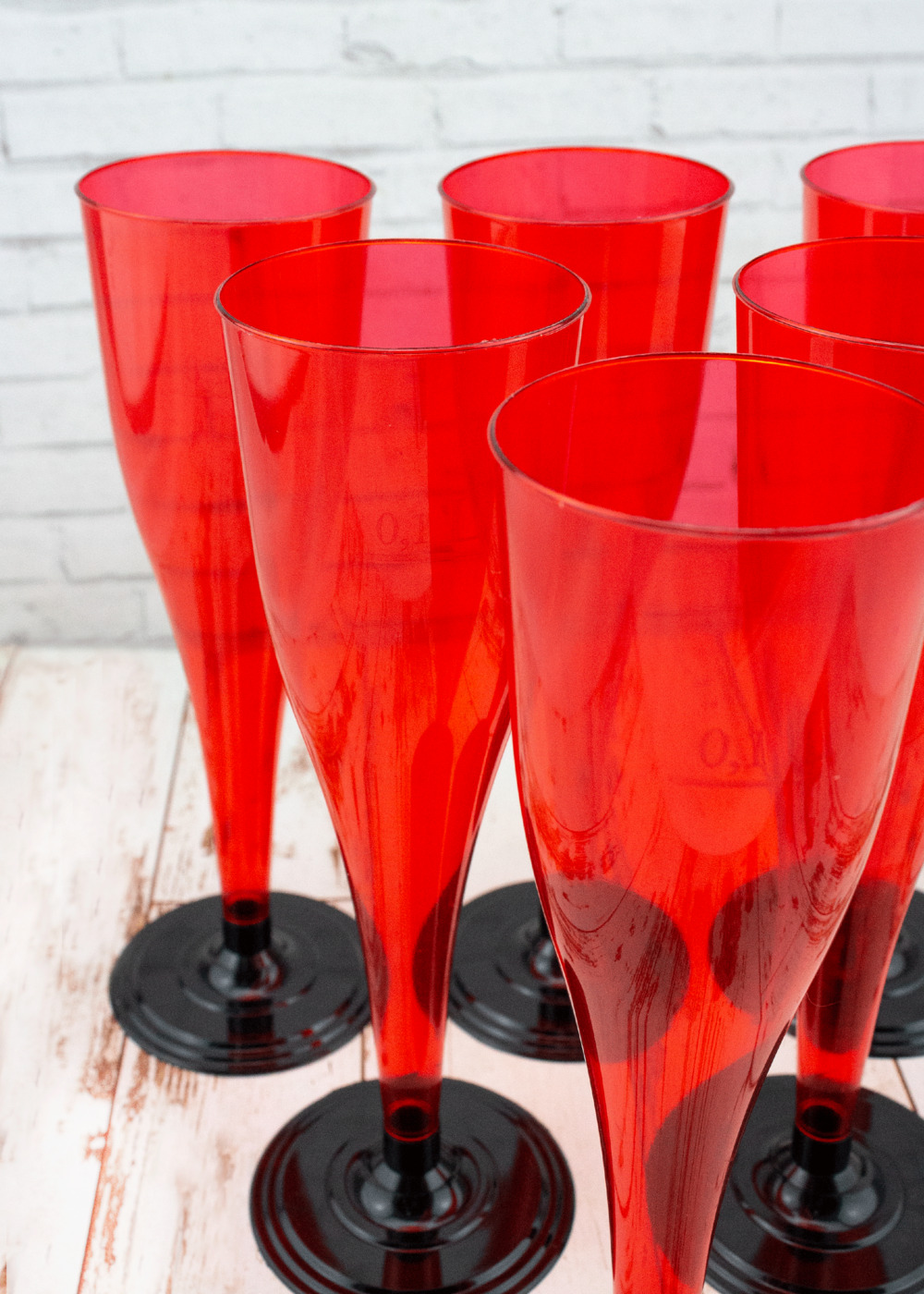 РАТАТУЙ / 12 шт. по 170 мл. / Комплект: Одноразовый фужер для шампанского, бокал для шампанского со съёмной ножкой, Красный