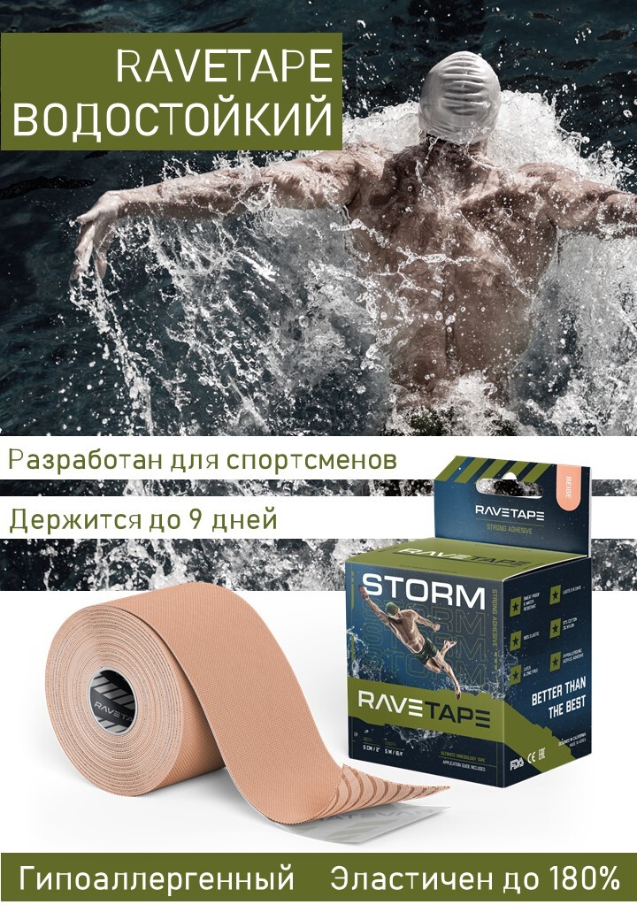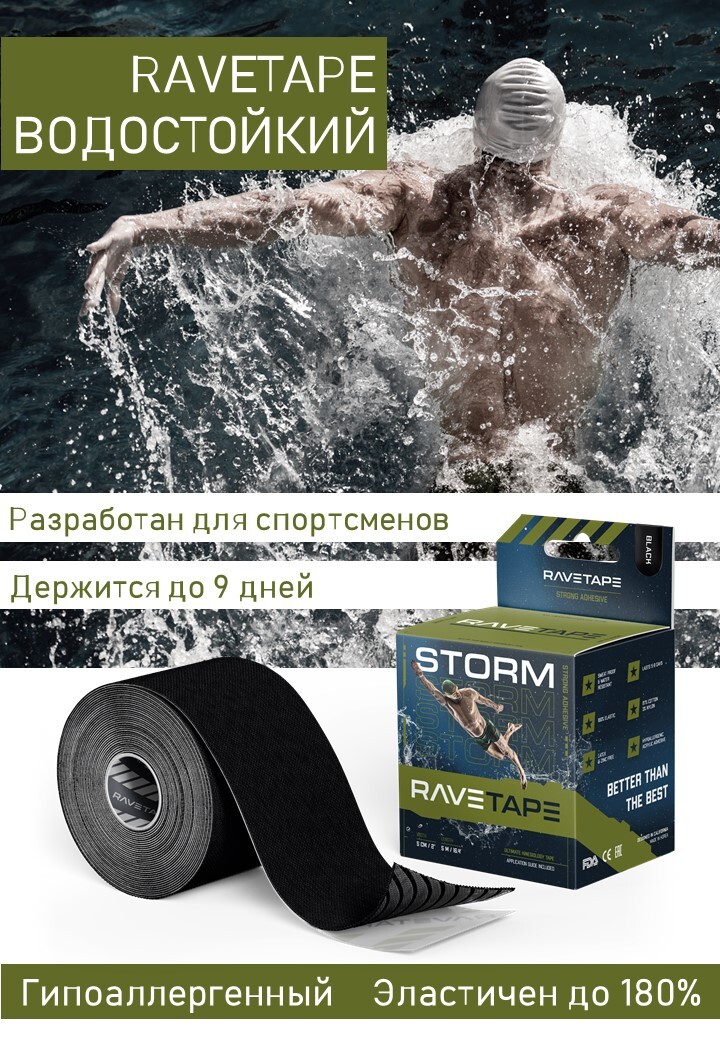 Атлетический тейп, Биомеханический тейп RaveTape STORM 5см, черный