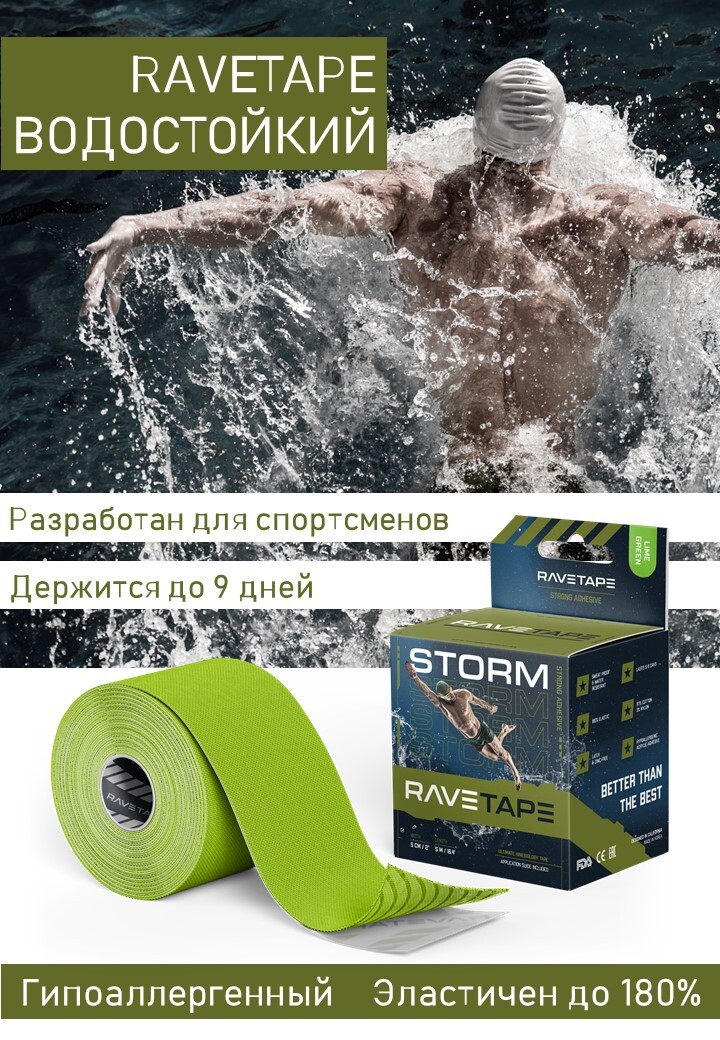 Атлетический тейп, Биомеханический тейп RaveTape STORM 5см, светло-желтый, светло-зеленый