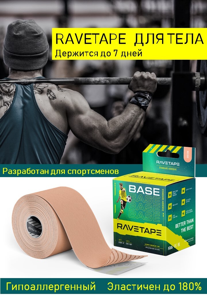 Атлетический тейп, Спортивный бинт RaveTape BASE 5см Х 5 м, бежевый