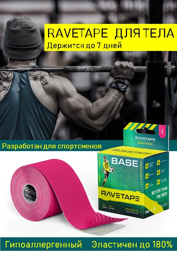 Кинезиотейп, Атлетический тейп RaveTape BASE 5см Х 5 м, розовый