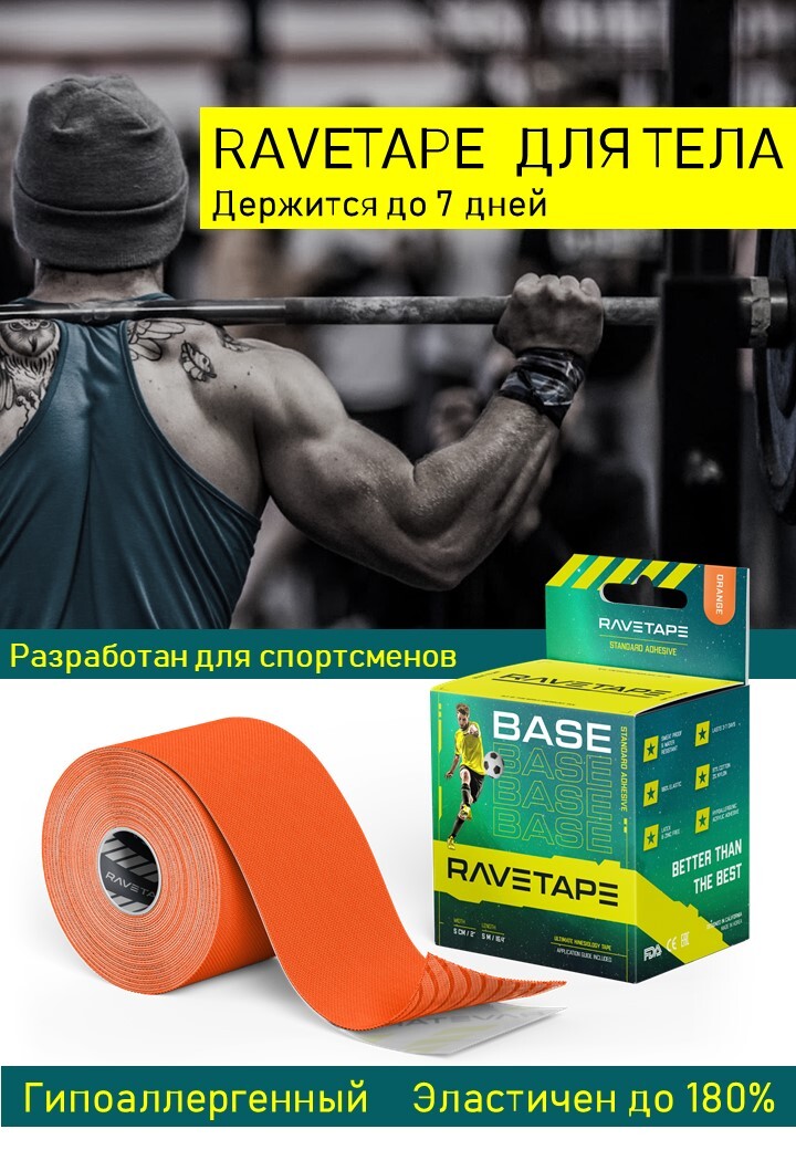 Кинезиотейп, Атлетический тейп RaveTape BASE 5см Х 5 м, оранжевый