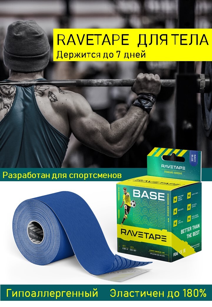 Кинезиотейп, Атлетический тейп RaveTape BASE 5см Х 5 м, синий, темно-синий