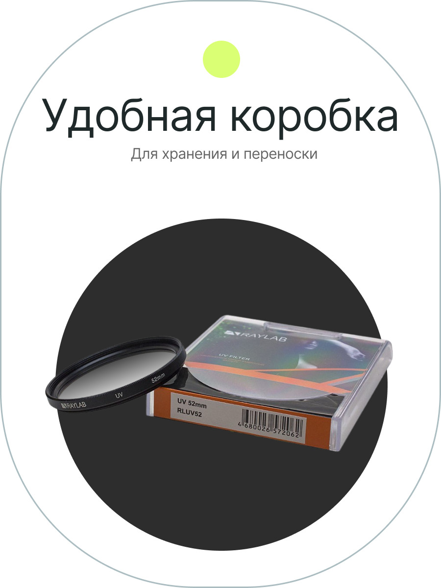 Фильтр защитный ультрафиолетовый RayLab UV 52mm , защита объектива, защита камеры, от солнца и влаги