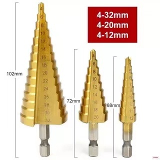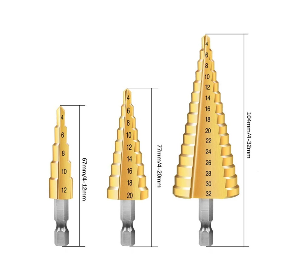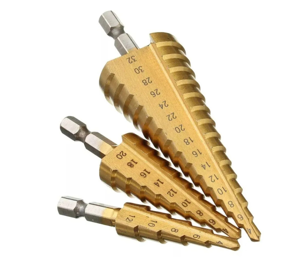 Набор ступенчатых сверл АВС по металлу с титановым покрытием 3шт (4-12м, 4-20м, 4-32мм) RAZAIAN