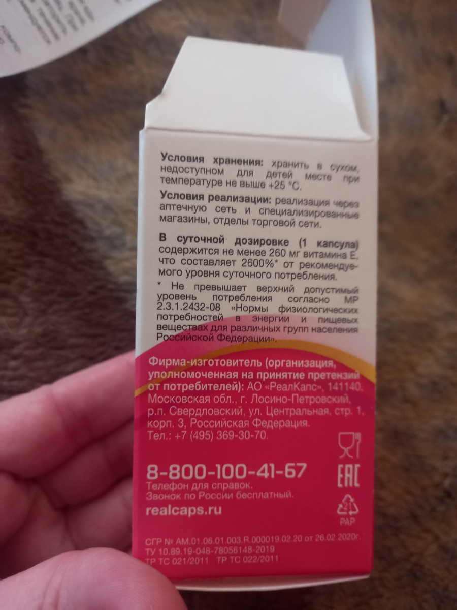 Real Caps Витамины А + Е капс. 300мг №20, 3 упаковки