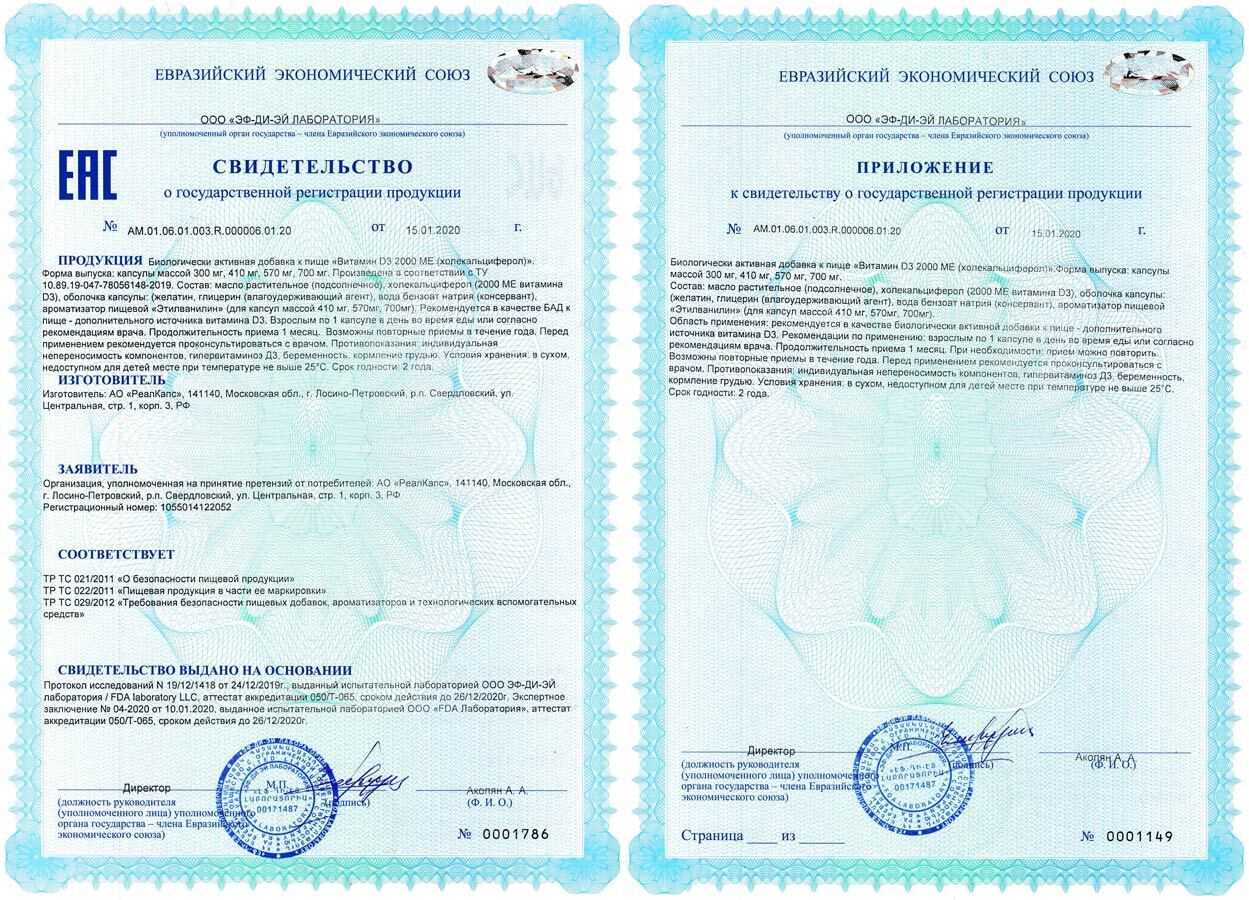 Real Caps, Витамин D3, холекальциферол, 2000 МЕ, 570 мг, 90 капсул