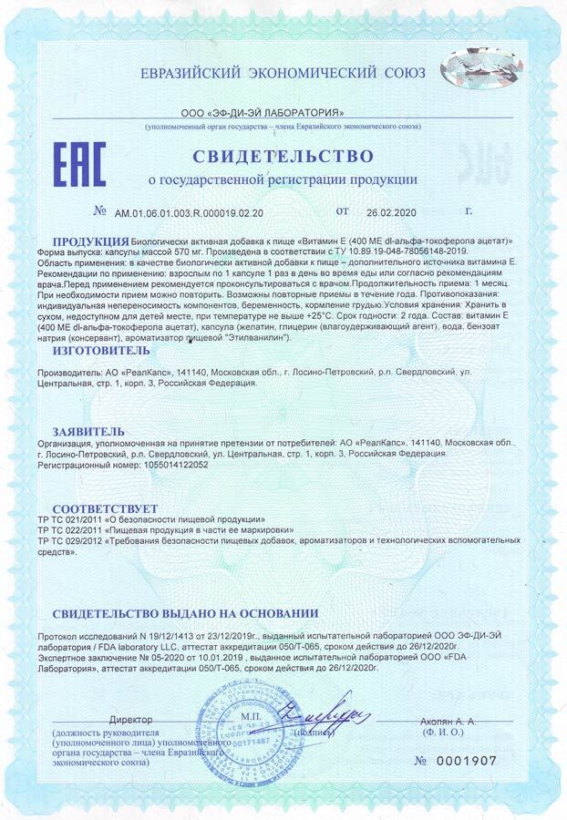 Real Caps Витамин Е , 200 мг, 200 МЕ, №30