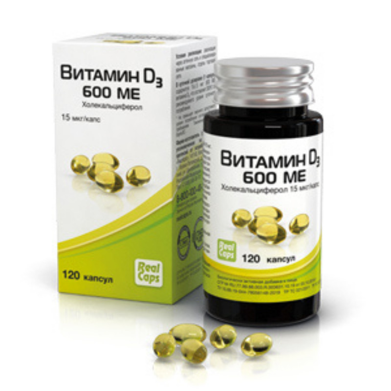 Real Caps, Витамин D3, холекальциферол, 2000 МЕ, 30 капсул, 570 мг,
