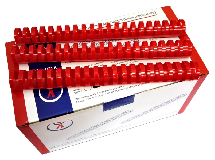 Пружина пластиковая для переплета, 25 мм, для сшивания 205-240 листов, красная, 50 шт, РеалИСТ