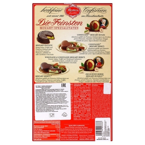 Подарочный набор шоколадных конфет "REBER" (Моцарт) с окном 218 гр