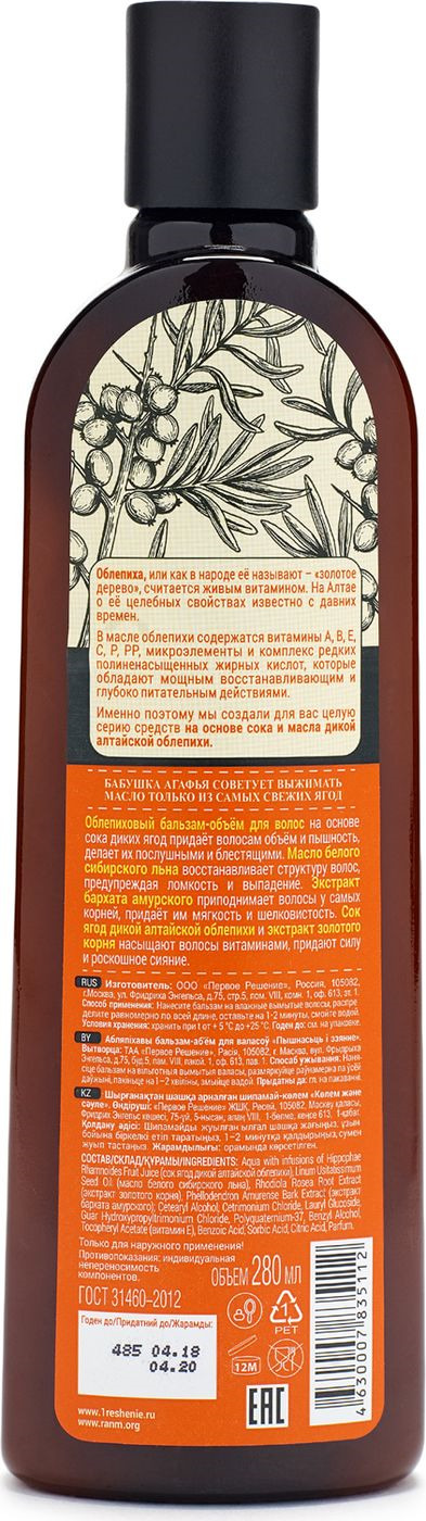 Рецепты бабушки Агафьи бальзам Агафьи Особый против выпадения и ломкости волос