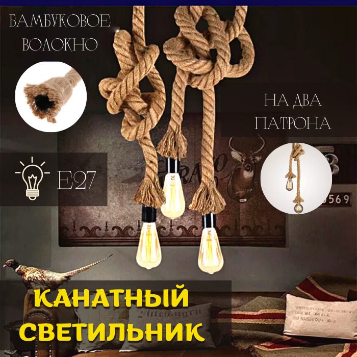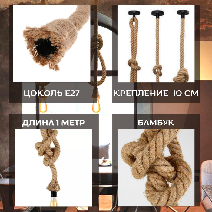 Подвесной светильник Recuerdo Love из каната, E27, 60 Вт