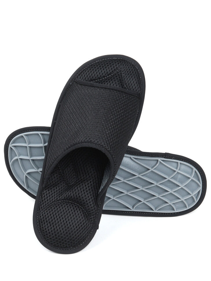 Тапочки массажные домашние Релаксы, тапочки с гранулами внутри для массажа ног, чёрные, размер 44