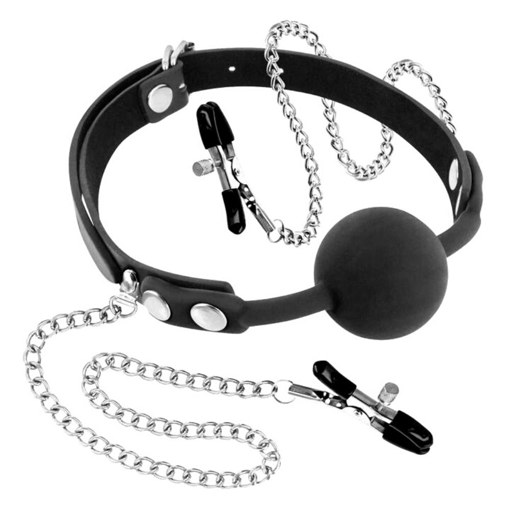 Кляп БДСМ силиконовый с зажимами на соски Relax Time Gag