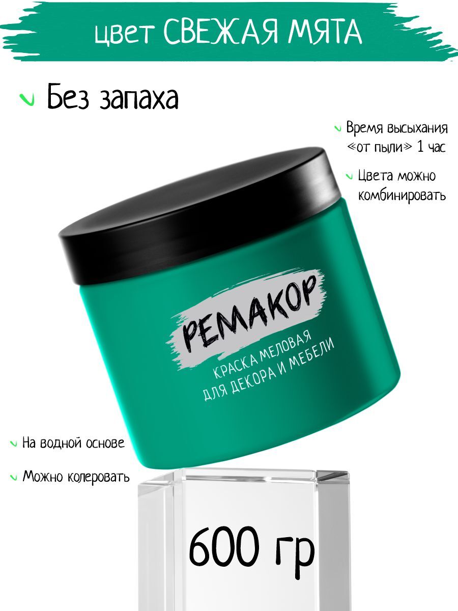 Краска РЕМАКОР для декора Быстросохнущая, Акриловая дисперсия, Меловая, Матовое покрытие, 0.6 кг