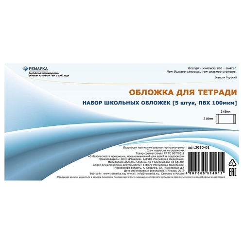 Набор из 10 шт. плотных обложек для тетрадей, Ремарка