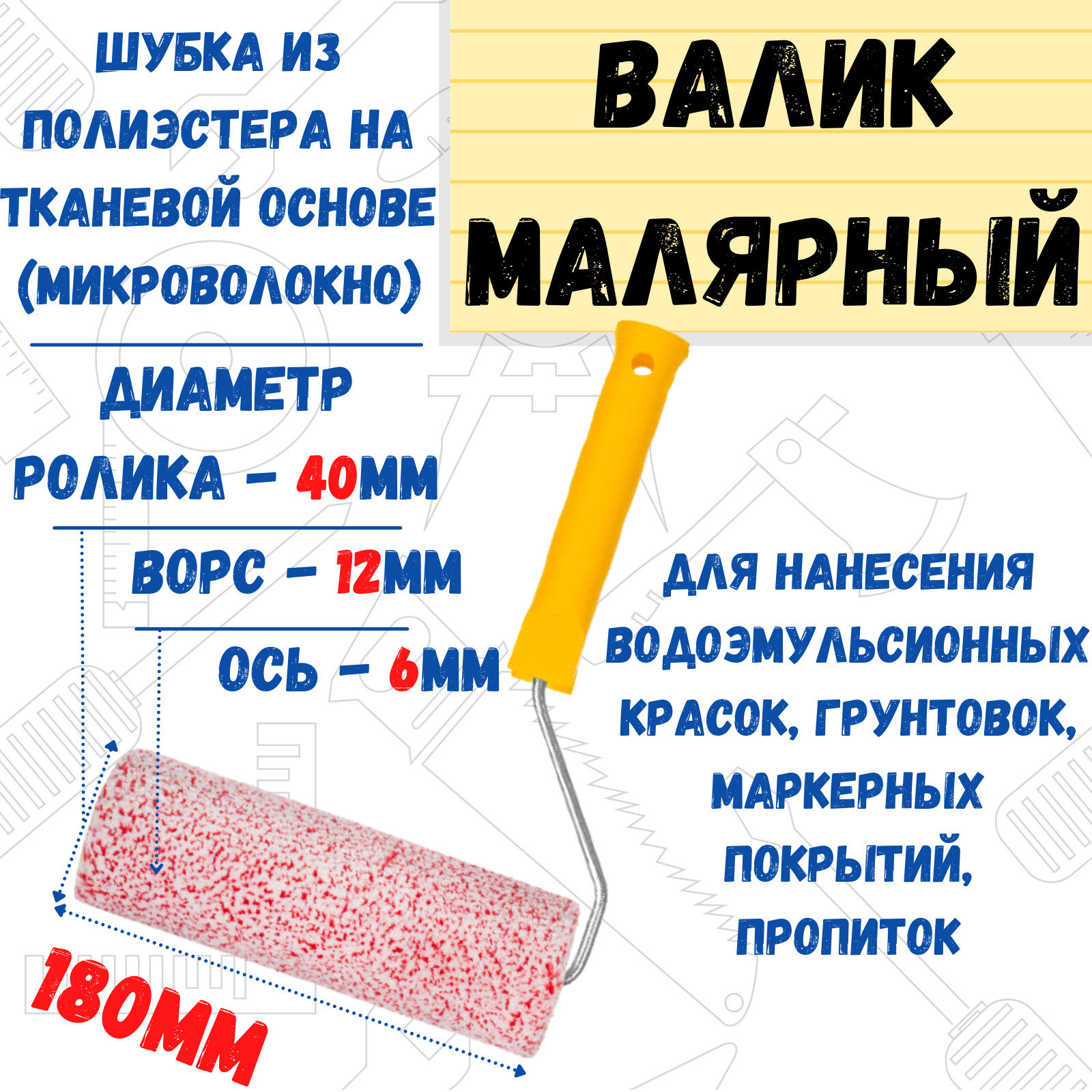 Валик малярный РемоКолор Микрофибра 180 мм, 40 мм, ворс 12 мм, ось 6 мм
