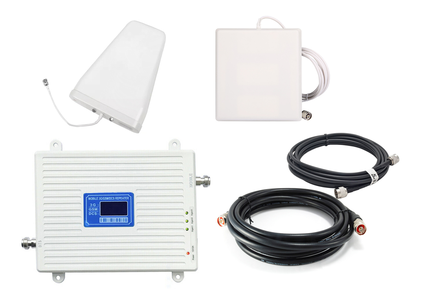 Репитер 2G-3G-4G/LTE 900-1800-2100МГц до 400 кв.м. 17 дБн. (комплект трёх-диапазонный усилитель сотовой связи/интернета кабеля 5+15 м)