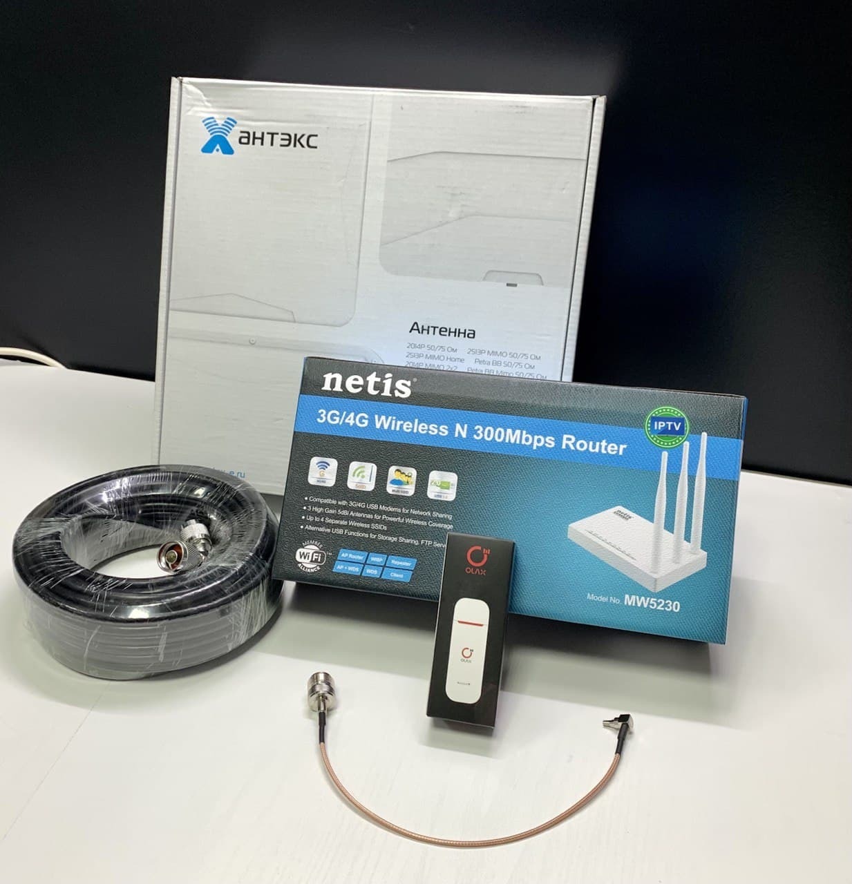 Комплект для усиления мобильного интернета 3G/4G (LTE) NET-MOL005/ модем с Wi-Fi роутером и антенной