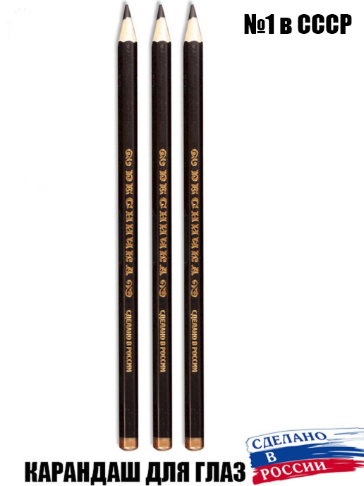 Ресничка Карандаш для глаз и век №1 в СССР Черный, набор 3 штуки