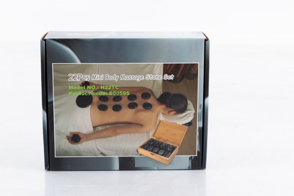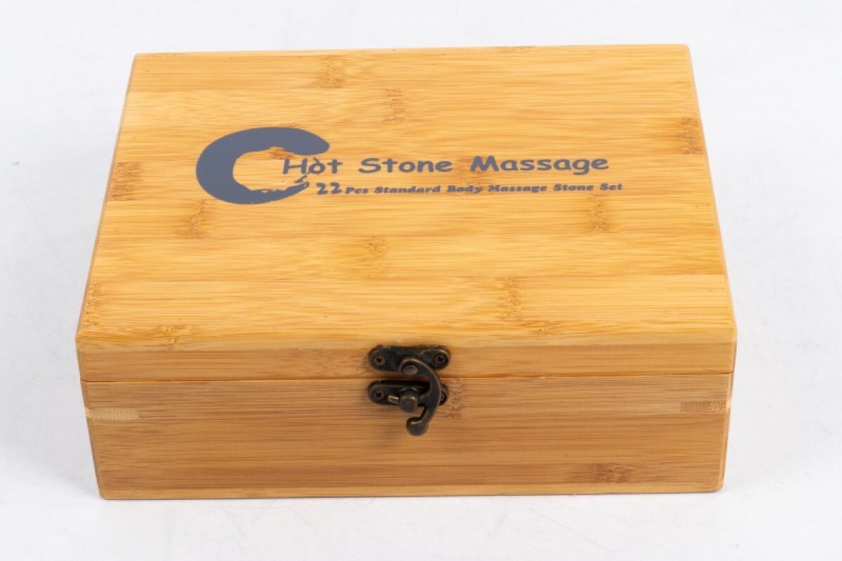 Набор массажных камней из базальта в коробке из бамбука (45шт.)