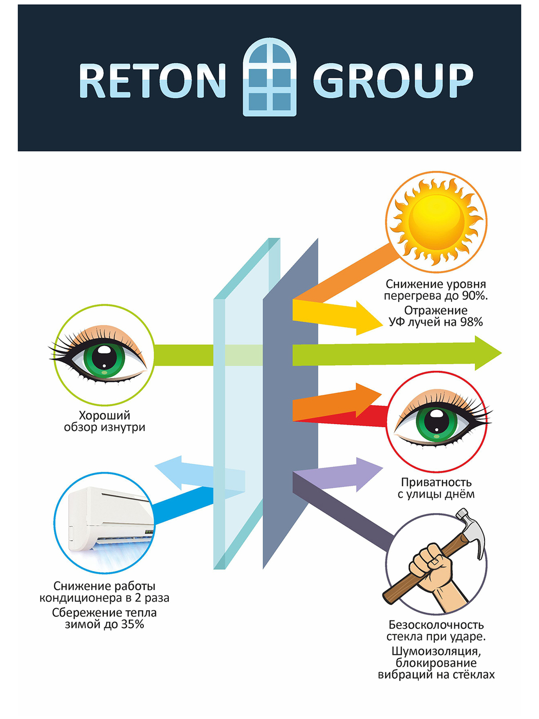 Пленка солнцезащитная для окон Reton Group 152х200см